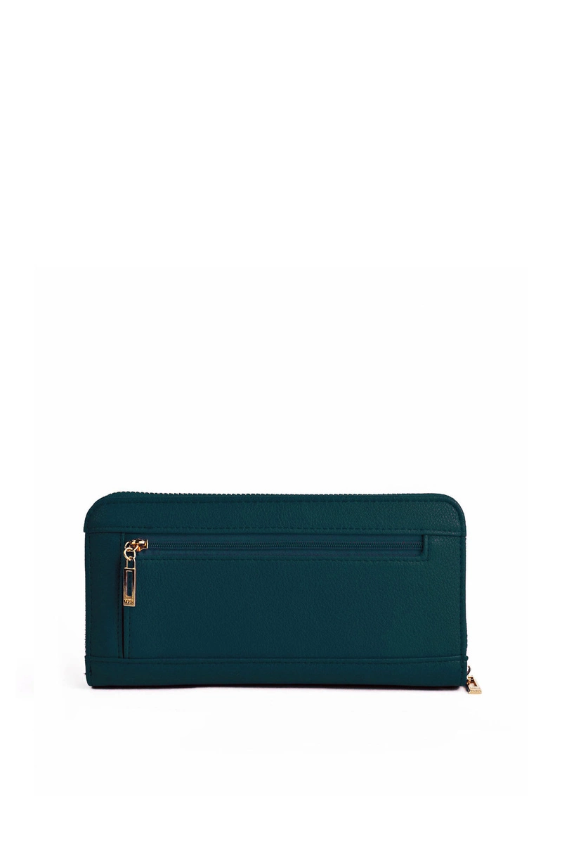 Duży portfel wykonany z eko skóry. Z przodu posiada emblemat, natomiast z tyłu znajduje się kieszonka zapinana na suwak. Dodatkowo do portfela jest dołączony paseczek. W środku posiada miejsce na wizytówki oraz banknoty, a także kiszonkę zapinaną na suwak. Piękny, klasyczny portfel dostępny w wielu modnych kolorach. Musisz go mieć!