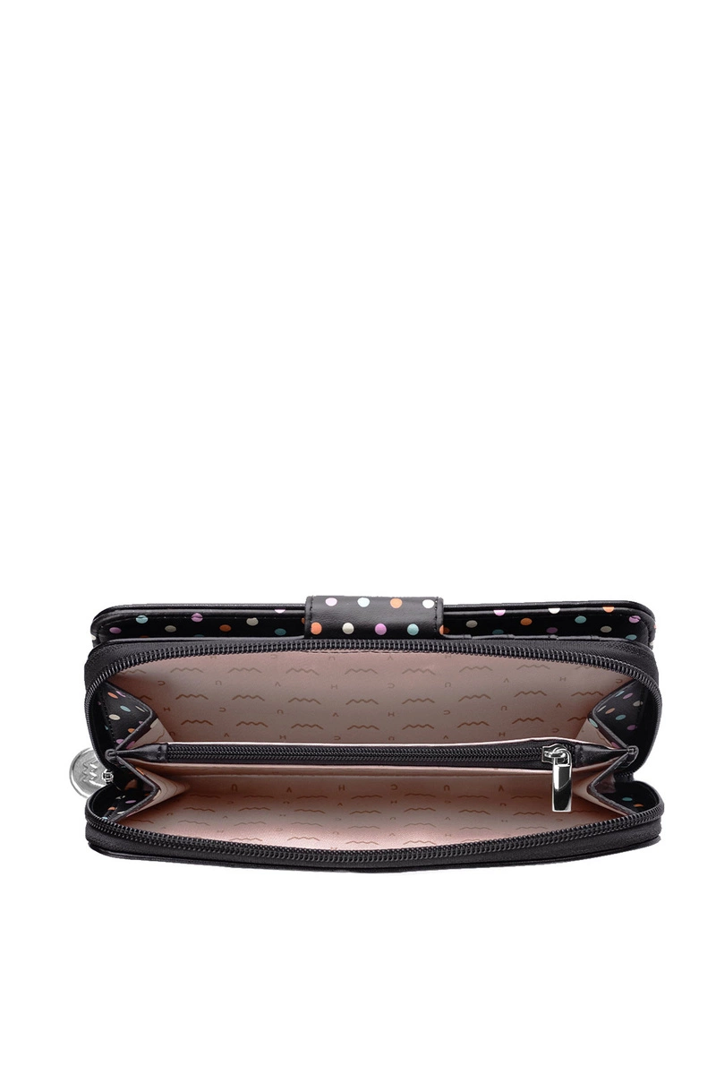 Damski Duży Portfel Na Suwak Kropki Czarny Lunelly