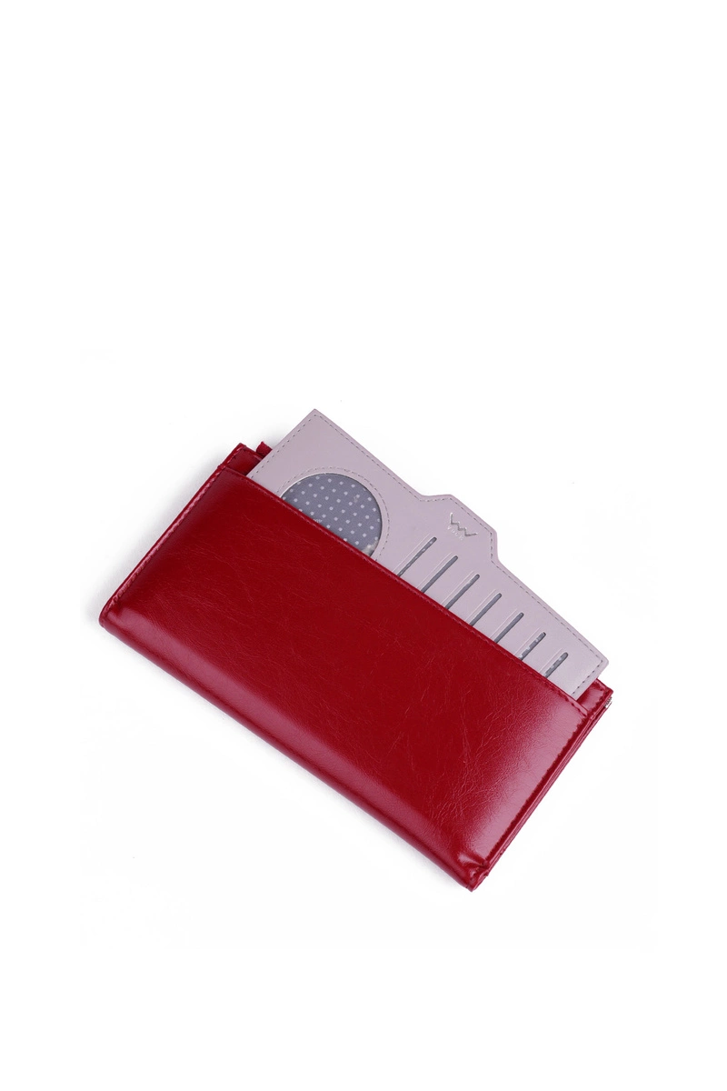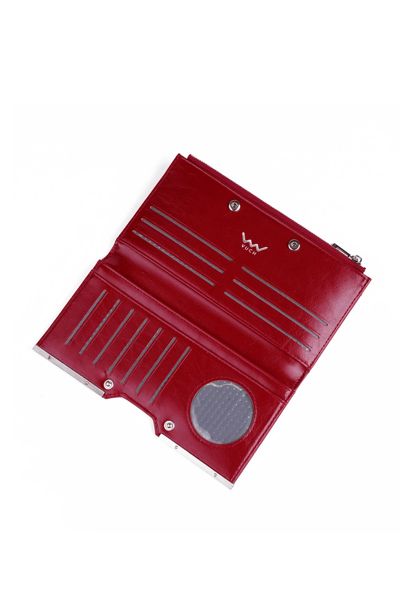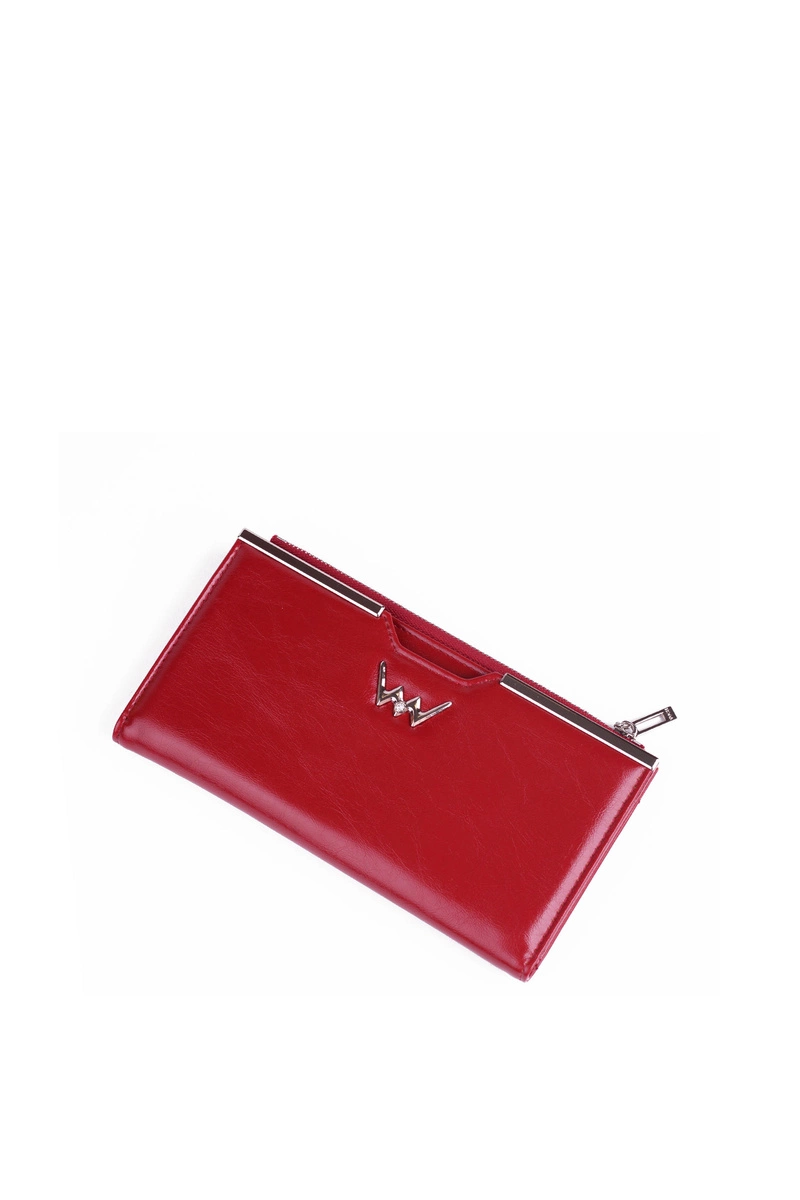 Ten portfel zachwyci niejedną miłośniczkę wyjątkowych modowych akcesoriów! Elegancki portfel został wykonany z eko skóry. Na przodzie widnieje emblemat z ozdobną cyrkonią. Z tyłu natomiast znajduje się otwarta kieszeń, w której został umieszczony wyciągany wizytownik z miejscem na zdjęcie w innym kolorze niż portfel. Część zapinana na napy także zawiera miejsce na wizytówki czy dowód osobisty oraz zdjęcie. Kieszonka zapinana na suwak pomieści monety.