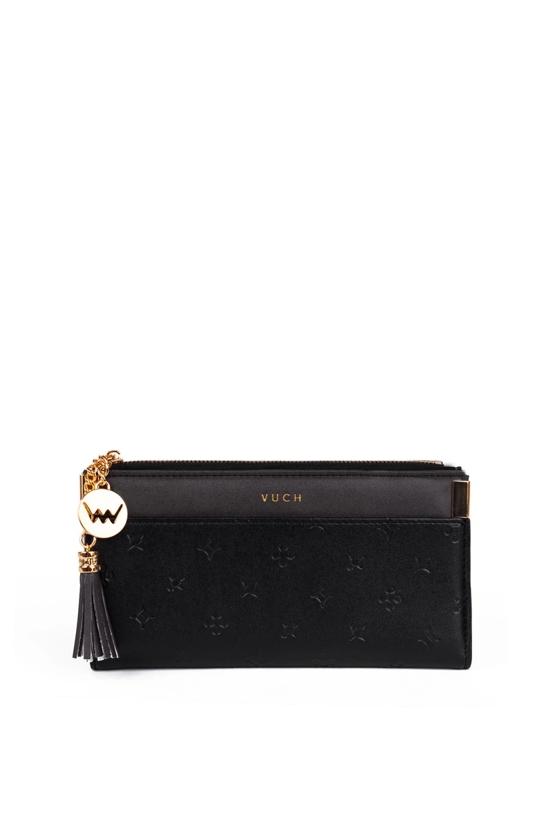 Piękny portfel z tłoczeniem został wykonany z eko skóry. Z przodu posiada otwartą kieszonkę. Zapinany na suwak oraz dwie napy. W środku posiada wiele miejsca na karty kredytowe czy wizytówki oraz miejsce na zdjęcie. Przy suwaku znajduje się ozdobny frędzelek. Sprawdź także pozostałe modele portfeli!