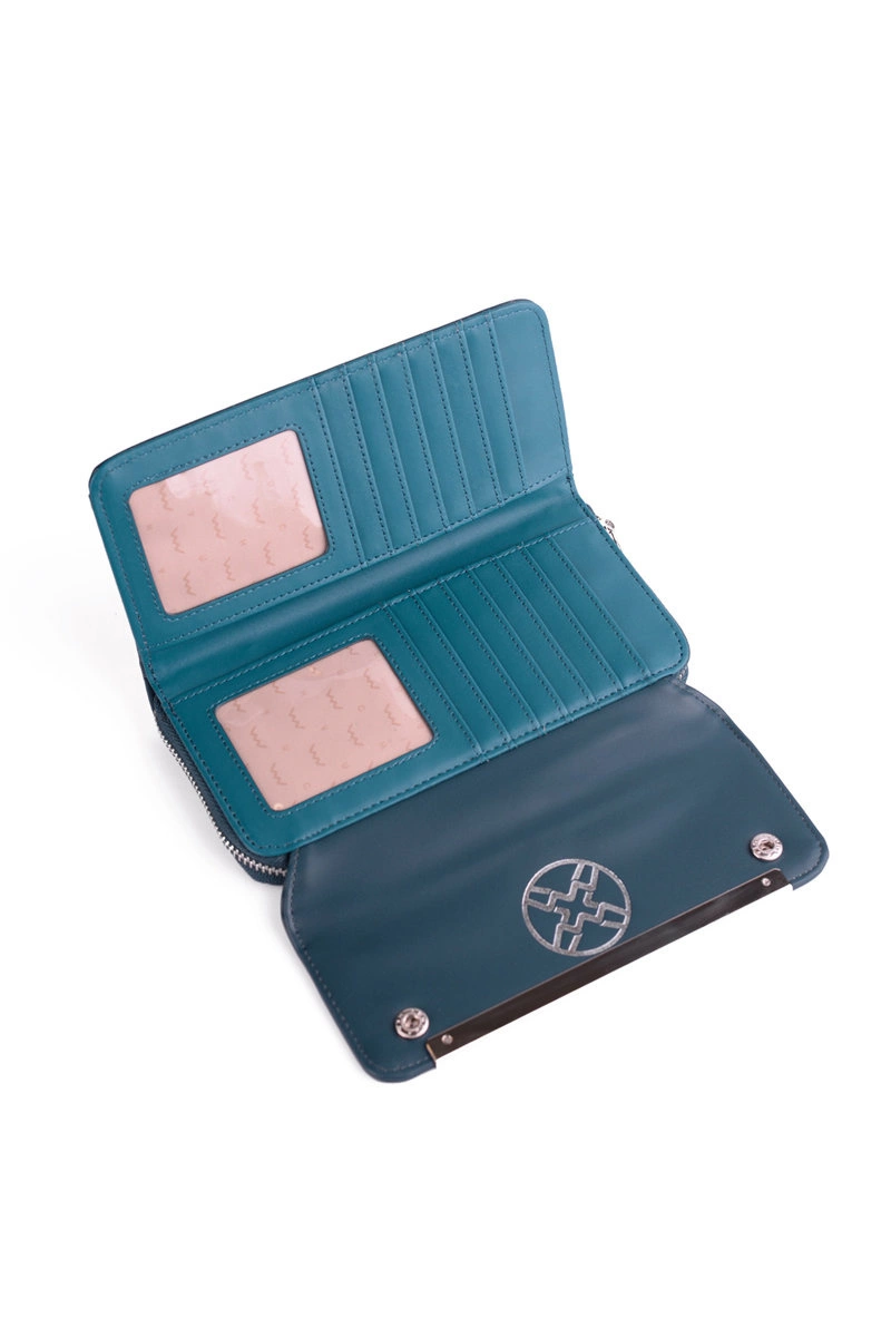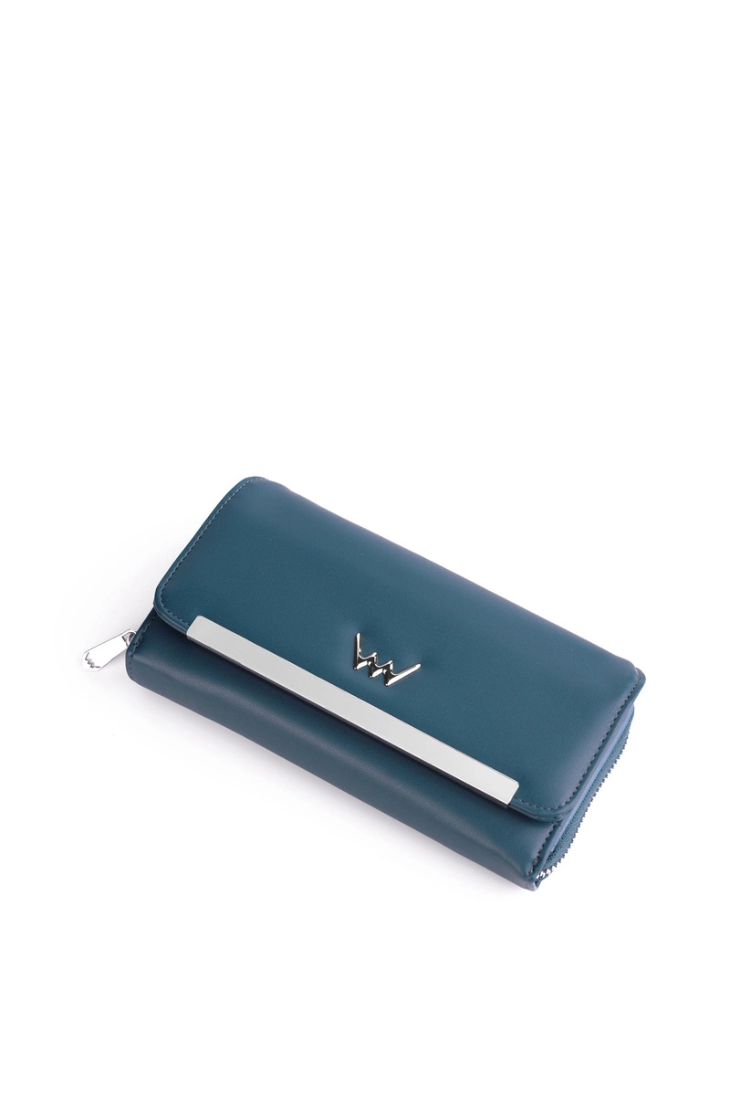 Duży Damski Skórzany Portfel Niebieski Elissie
