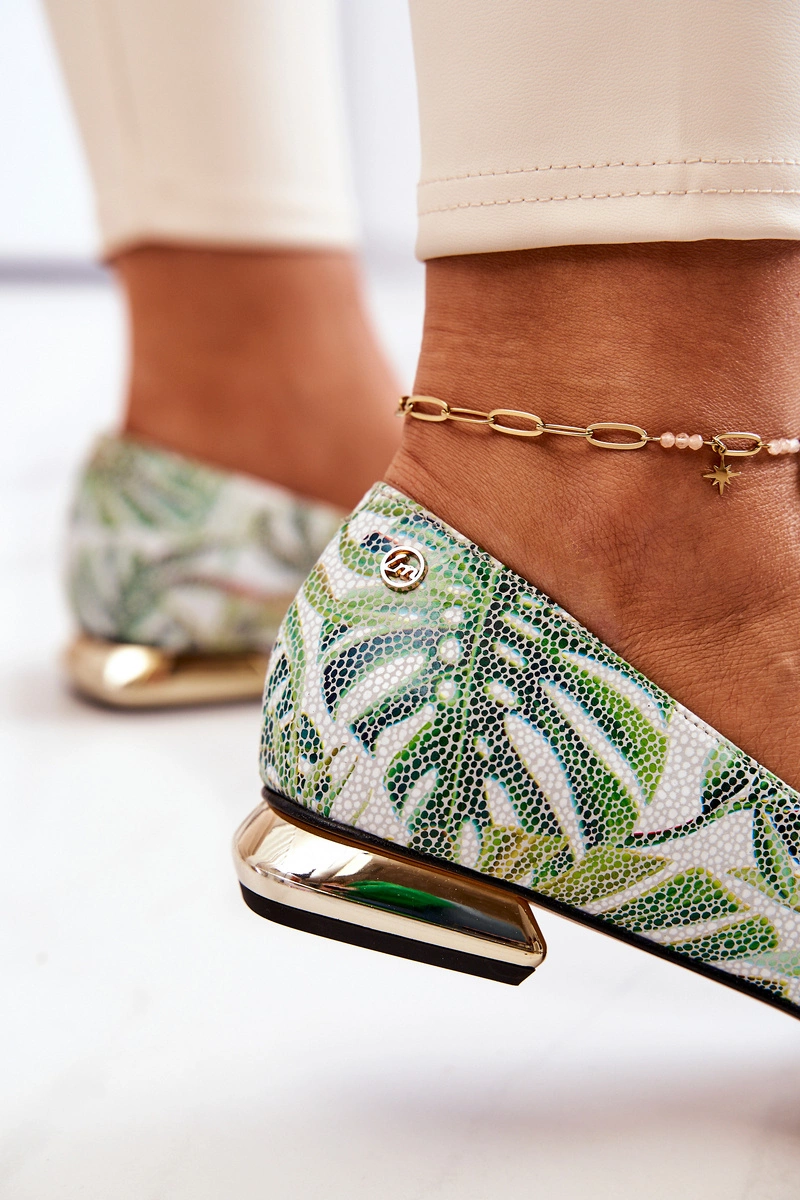 Baleriny Damskie Laura Messi Skórzane Zielone 2193