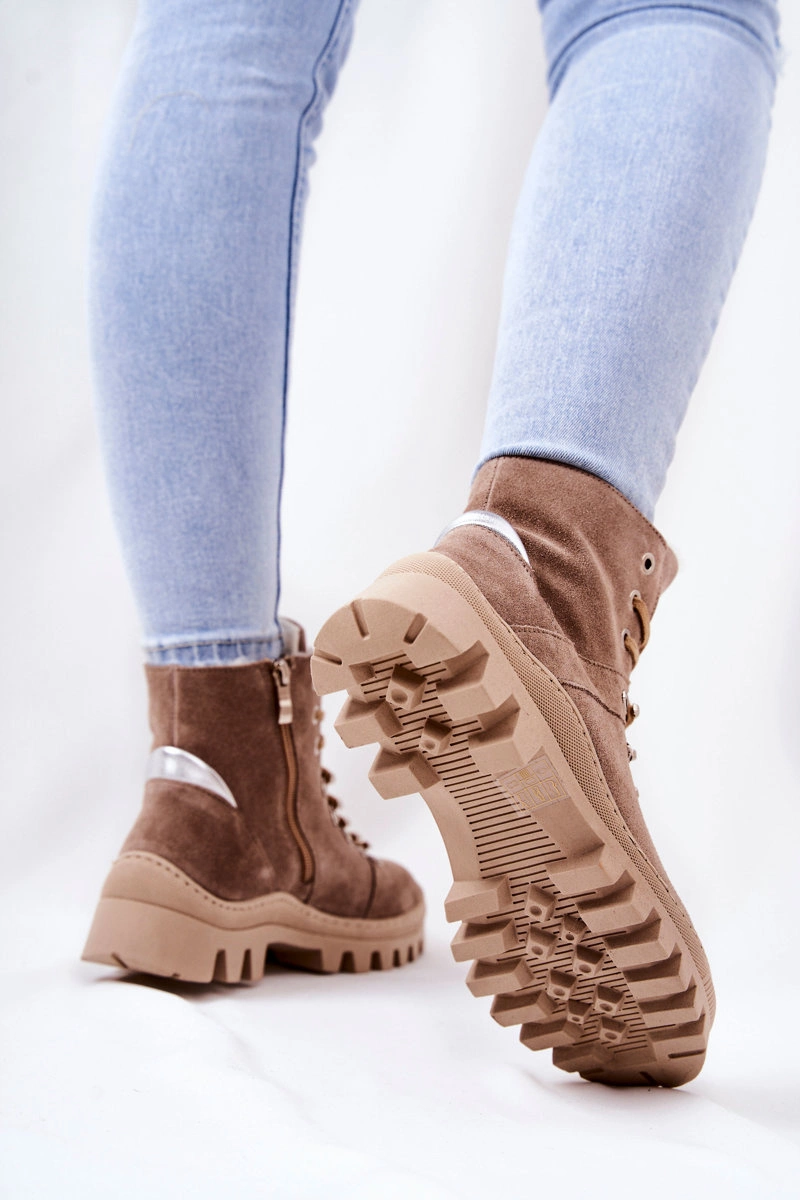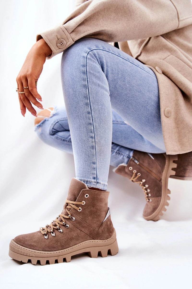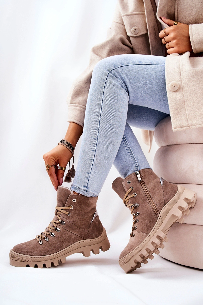 Ocieplane Zamszowe Botki Piasek Sandstorm