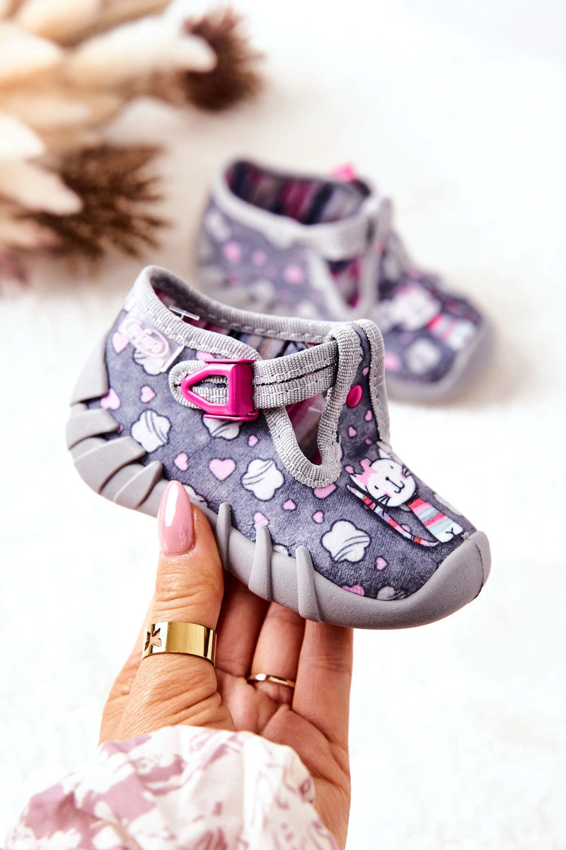 Ten model zachwyci niejedną młodą osóbkę! Śliczne buciki z zapinką przy kostce doskonale podtrzymują nóżkę dziecka, zapewniając mu stabilny i pewny krok. Posiadają szersze czubki, które dają dużo przestrzeni ruchliwym paluszkom oraz oddychającą podeszwę. Buty są polecane przez ortopedów. Sprawdź także inne nasze oferty z papciami dla dorosłych i dzieci! ! Przy wyborze rozmiaru prosimy kierować tabelą rozmiarów.