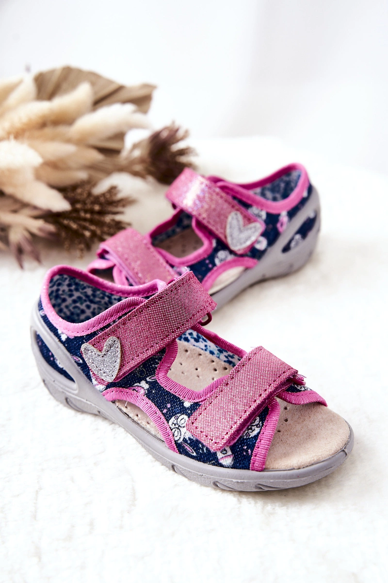 Sandałki Befado Na Rzep 065X151 Granatowo-Różowe