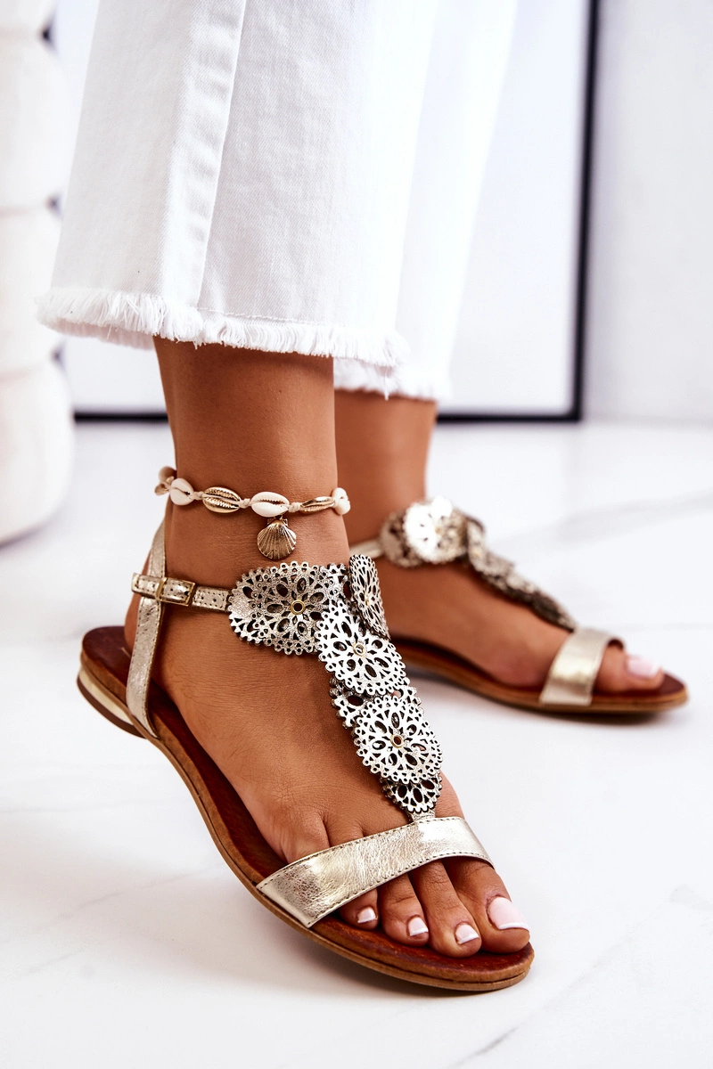 Skórzane Ażurowe Sandały Lewski 3049 Złote