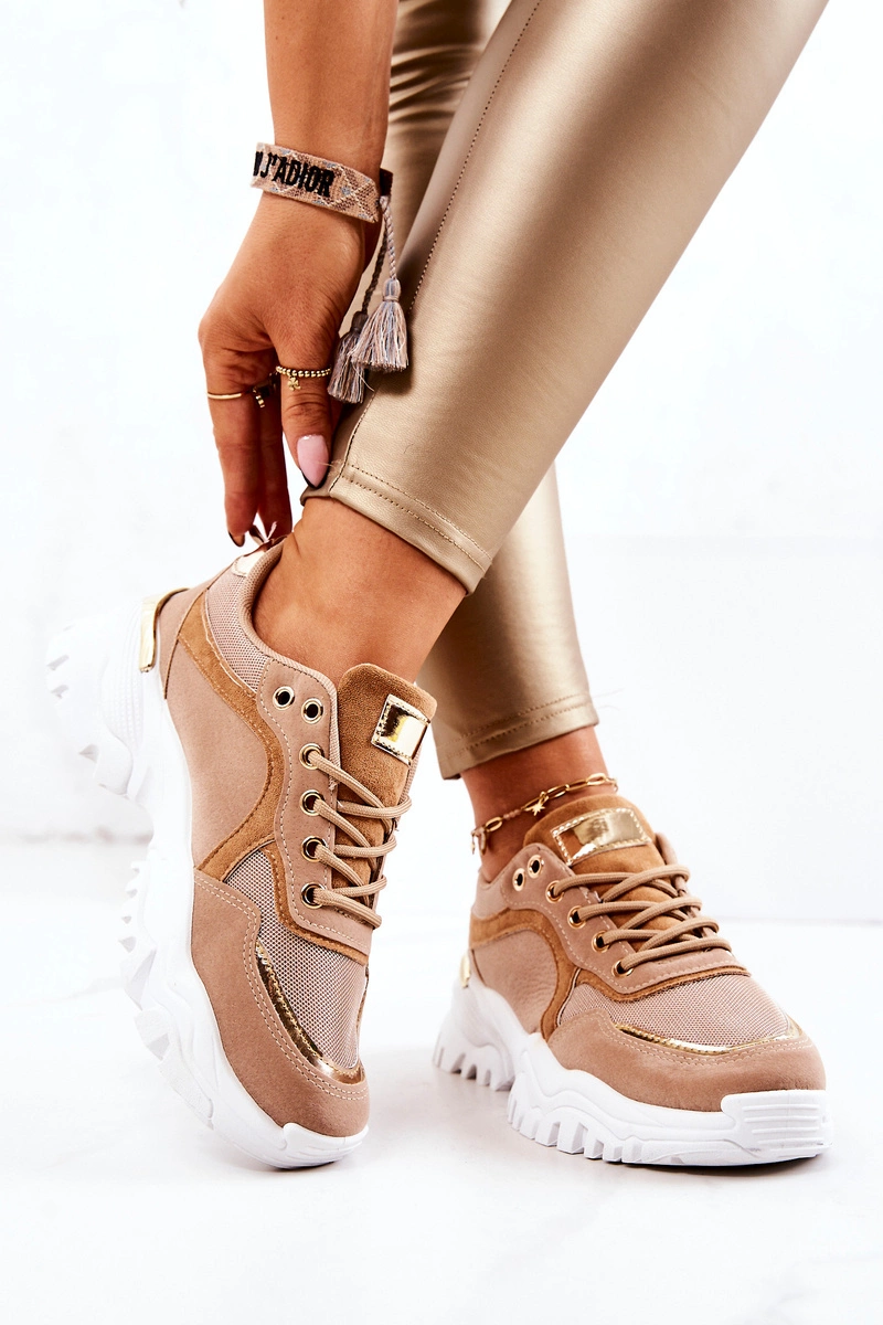 Buty sportowe typu sneakers zostały wykonane z eko skóry oraz materiału tekstylnego. O Twój komfort zadba miękka, materiałowa wkładka. Buty posiadają klasyczne wiązanie oraz masywną podeszwę chroniącą przed zimnym podłożem. Na przodzie oraz z tyłu obuwia znajdują się lustrzane elementy. Przy wyborze rozmiaru prosimy kierować się tabelą rozmiarów.