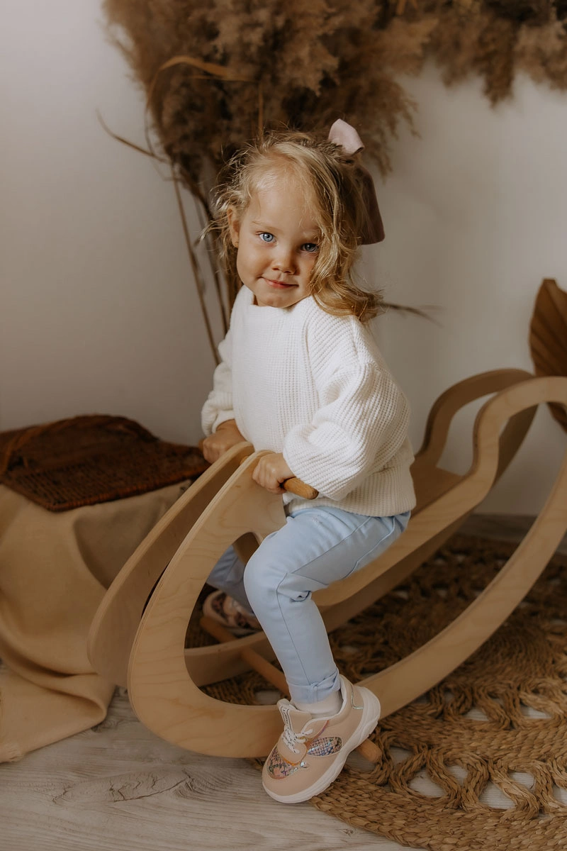 Wyjątkowe sportowe buty w wyjątkowy wężowy wzór. Buty wykonane są z eko skóry oraz tkaniny. Posiadają miękką, materiałową wkładkę. Stworzysz z nimi wiele przepięknych stylizacji! Twoja pociecha na pewno będzie zadowolona! Model wiązany. Delikatna platforma świetnie odizoluje od zimnego podłoża. Rozmiary od 19 do 24 posiadają inną podeszwę niż rozmiary od 25 do 30. Przy wyborze rozmiaru prosimy sugerować się tabelą rozmiarów.