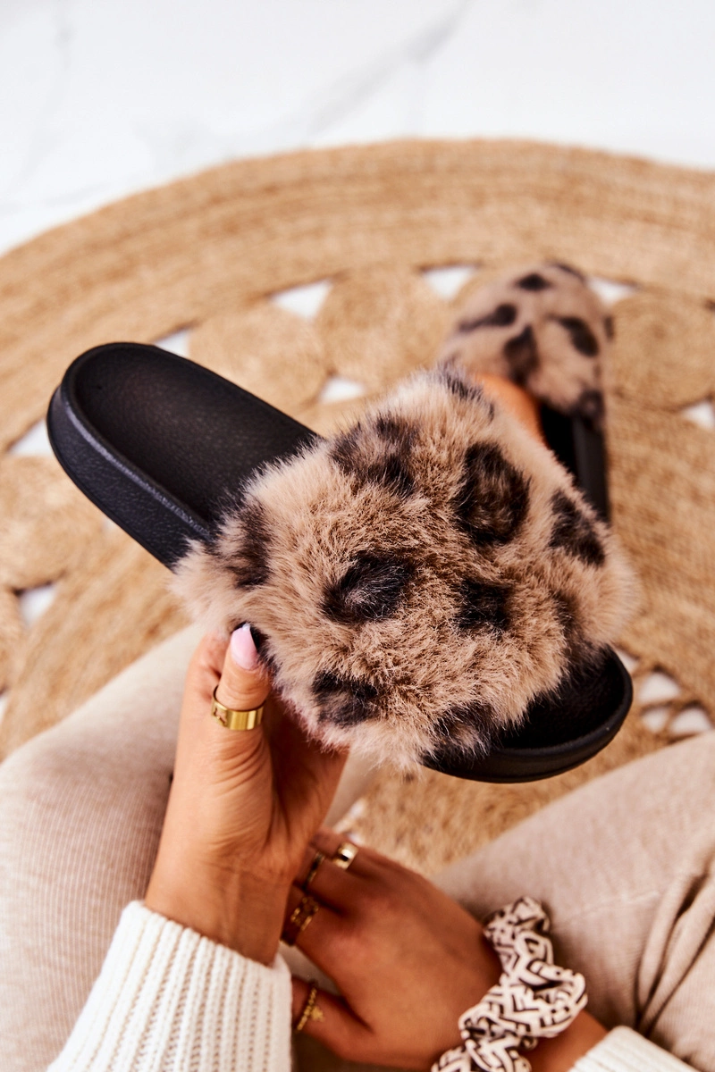 Klapki Z Futerkiem Gumowe Panterka Brązowe Noelle