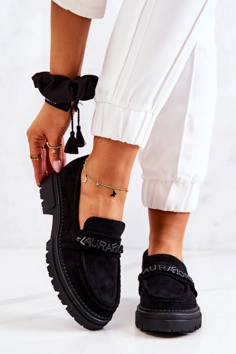 Zamszowe Półbuty Loafery Literki La.Fi 210001B-SU Czarne