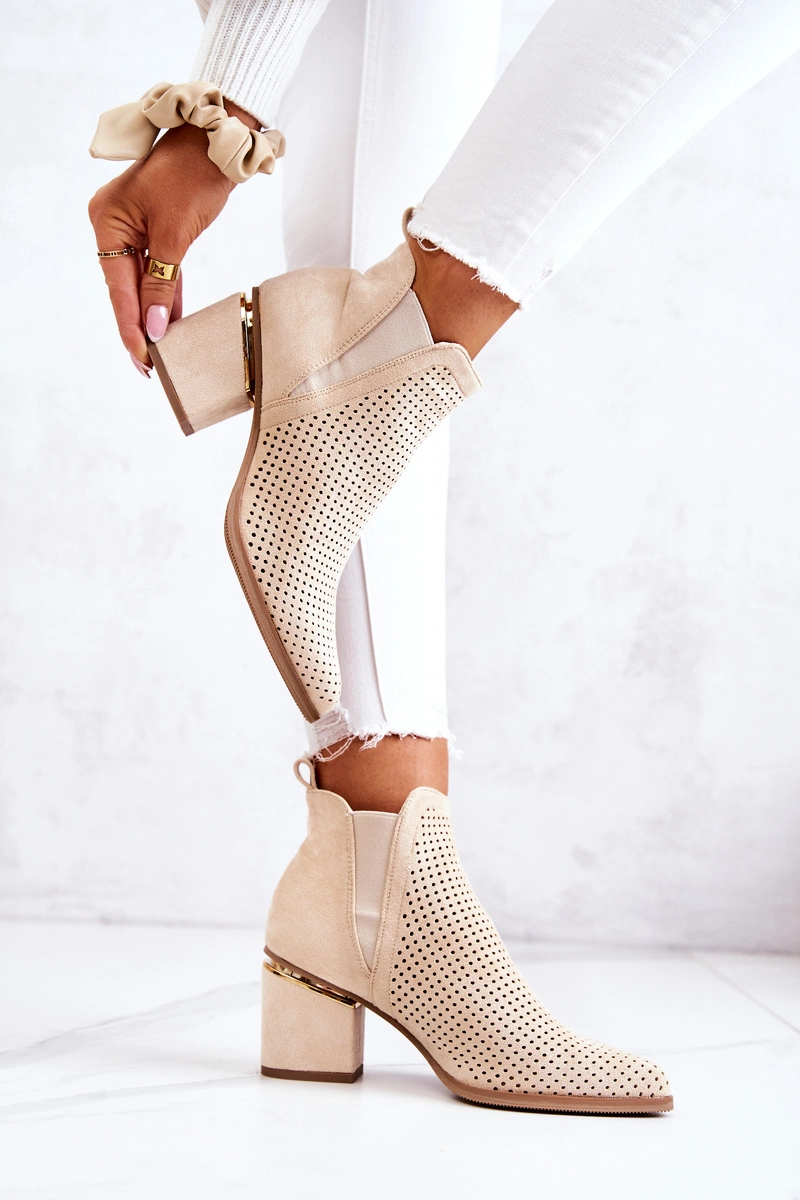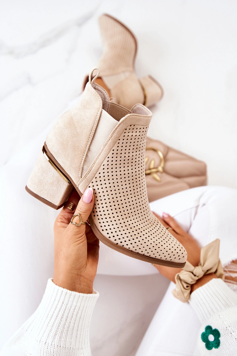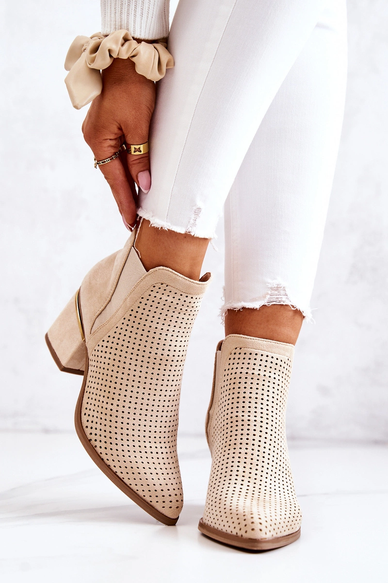 Zamszowe Botki Kowbojki Ażurowe Jasnobeżowe Helloni