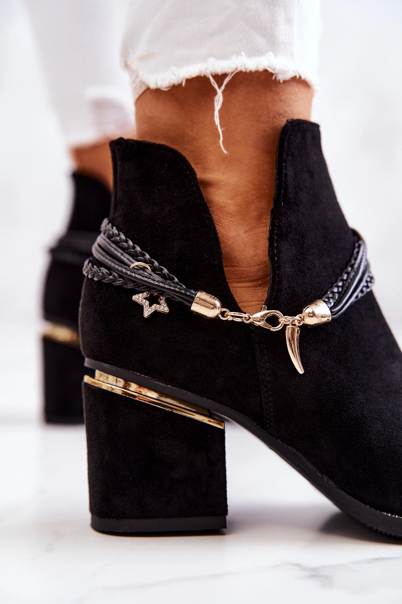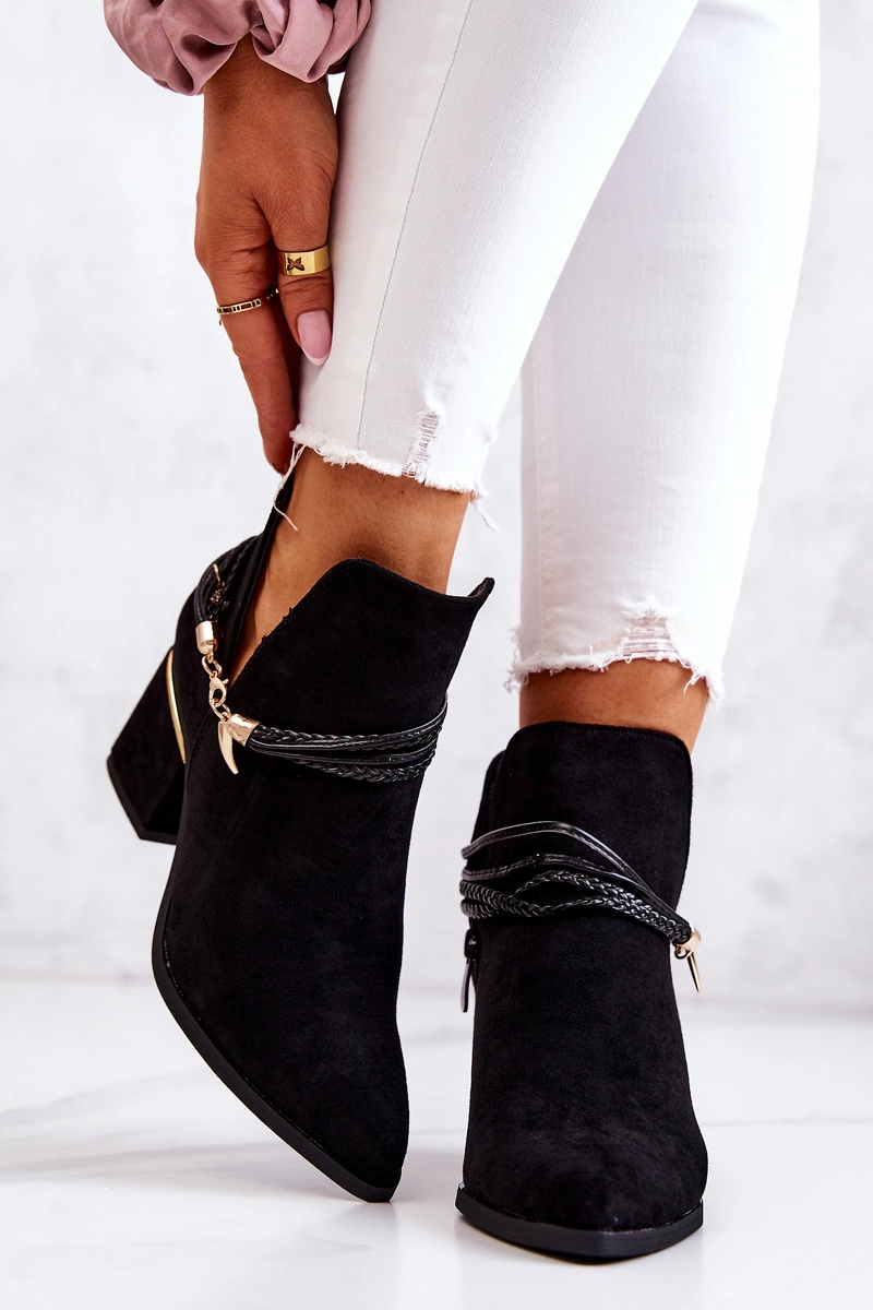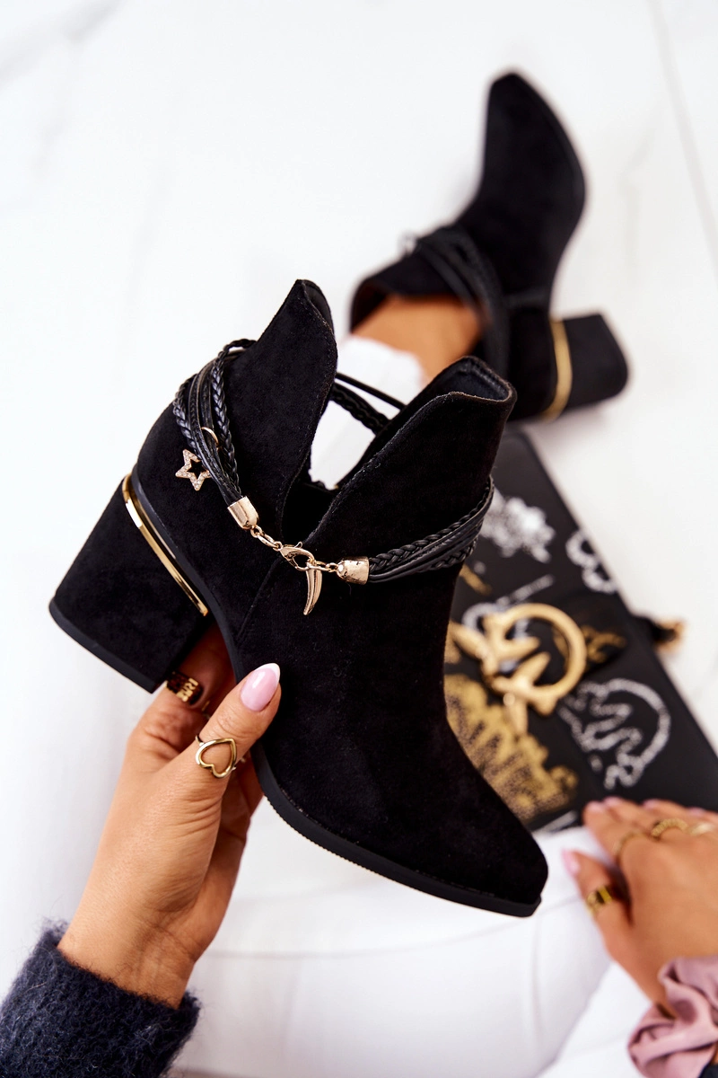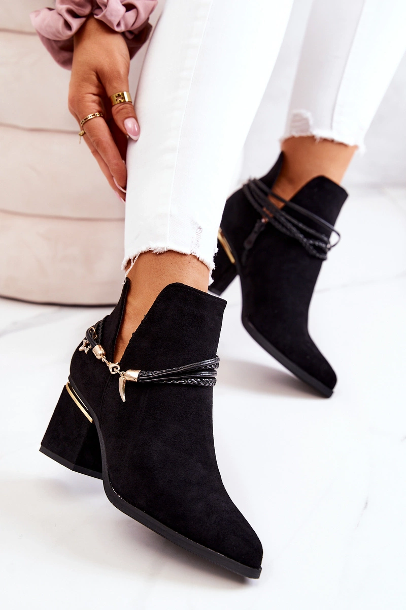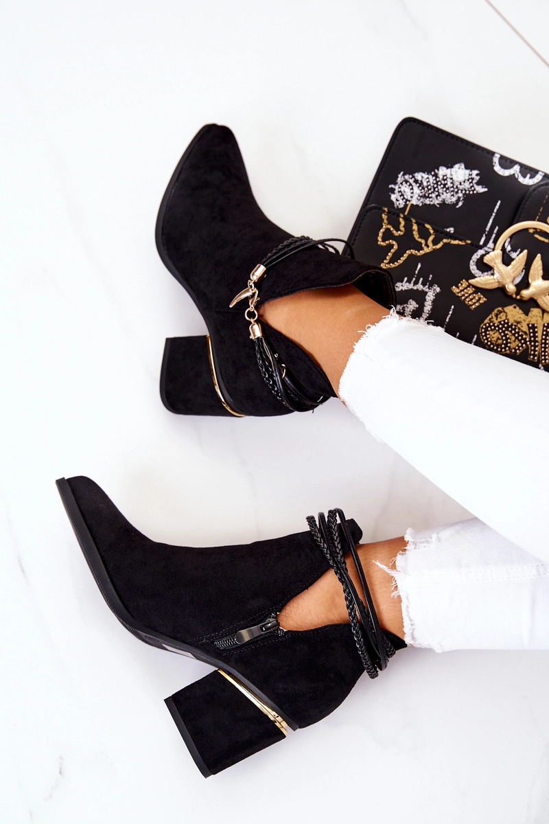 Zamszowe Botki Kowbojki Z Paskami Czarne Inessa