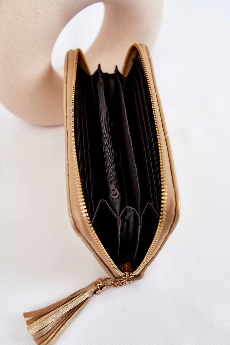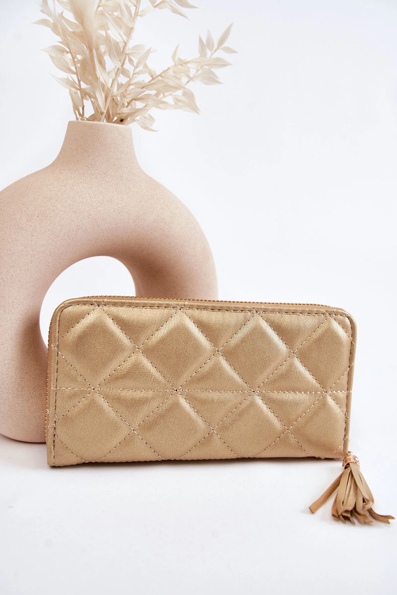 Duży Pikowany Portfel Z Paseczkiem Złoty Jeffrey