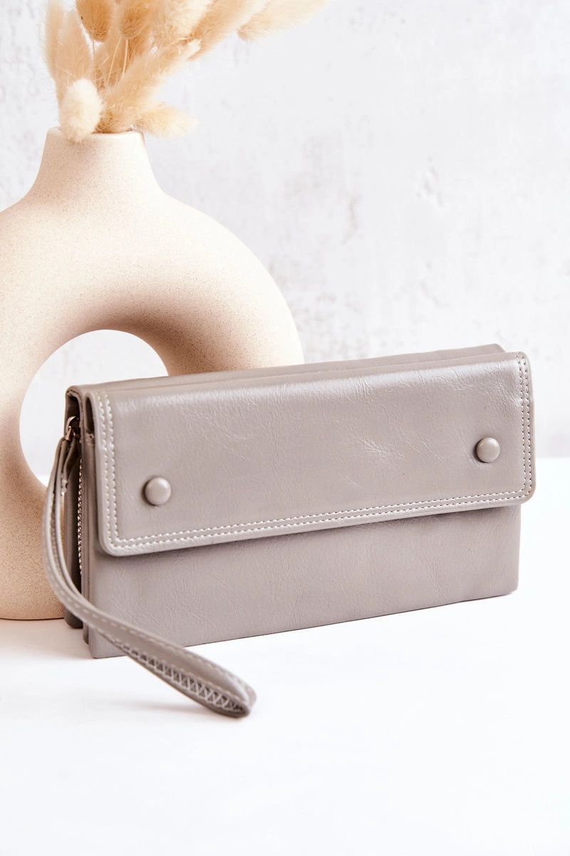 Duży Skórzany Portfel Na Suwak Szary Loreaine