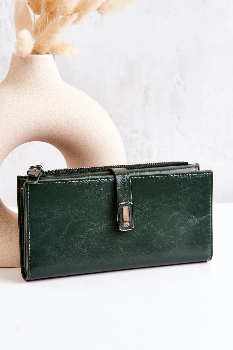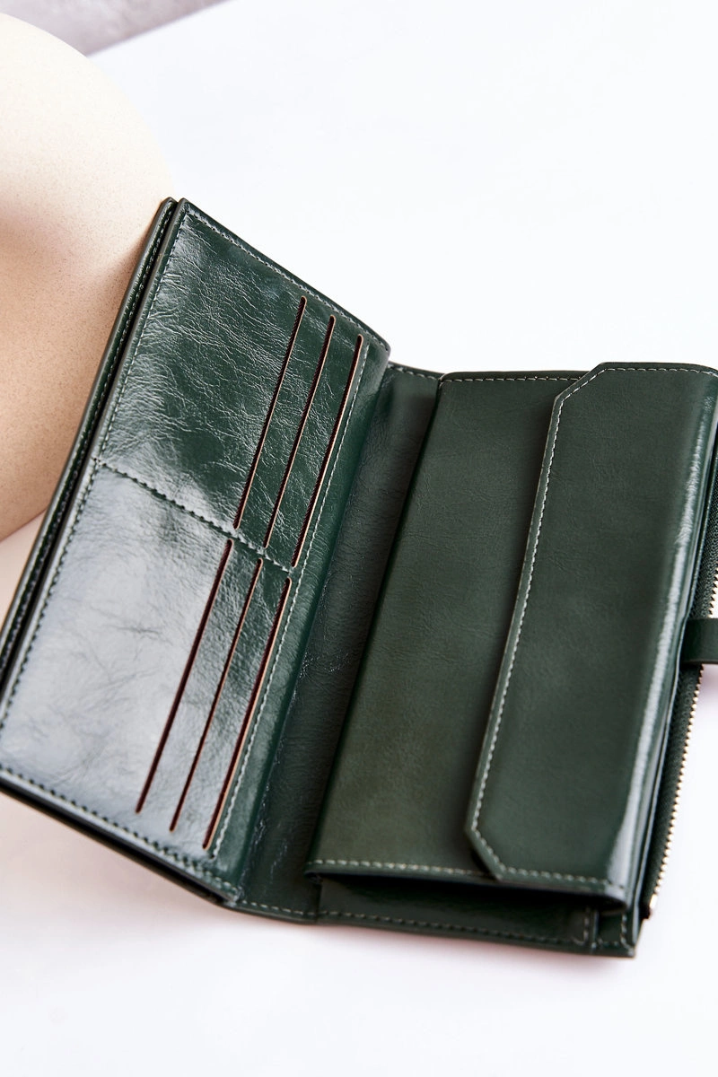 Duży Skórzany Portfel Na Magnes Zielony Nereva
