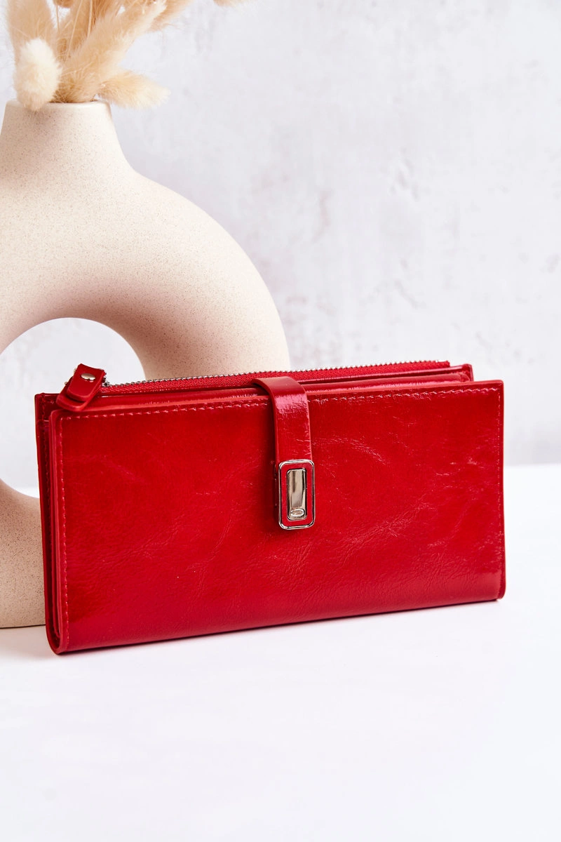 Duży Skórzany Portfel Na Magnes Czerwony Nereva
