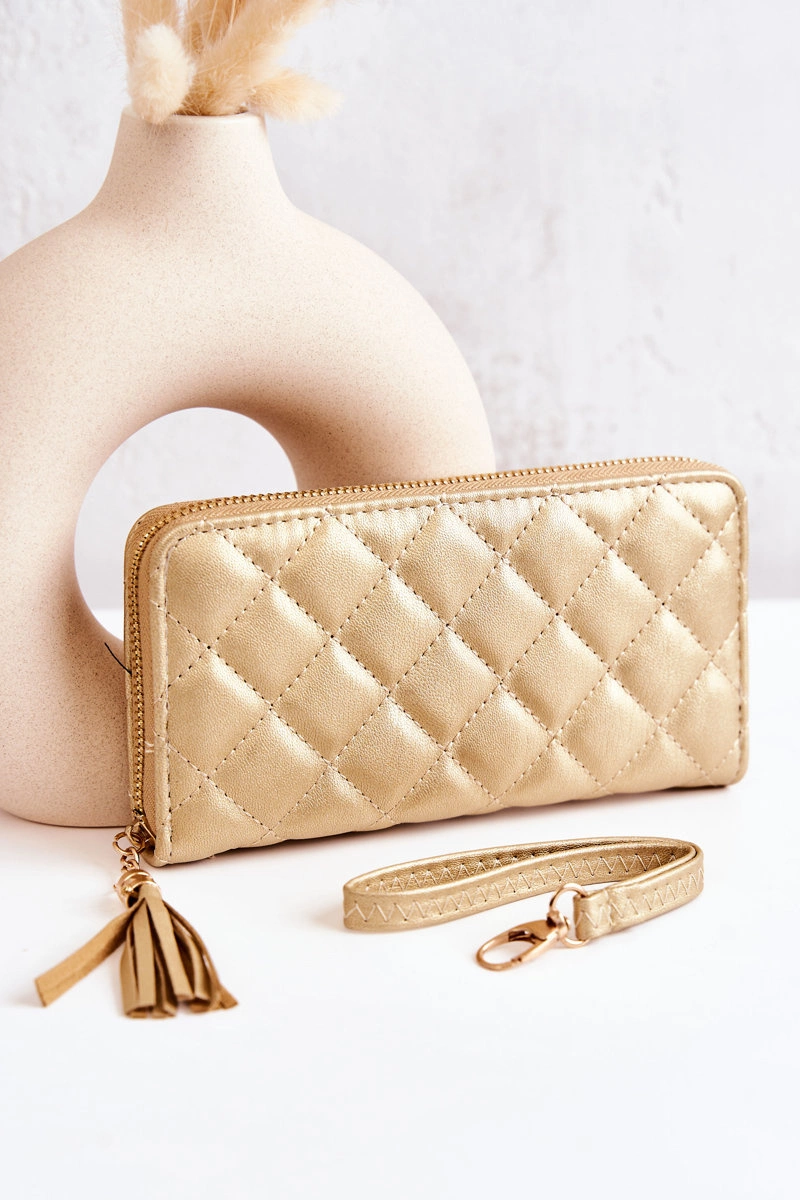 Duży Pikowany Portfel Z Frędzelkiem Złoty Selley