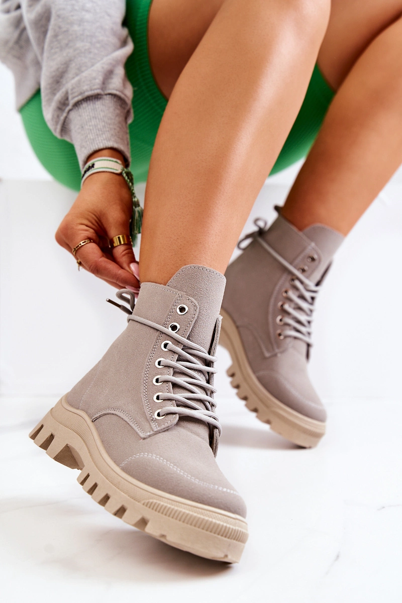 Zamszowe Botki Trapery Wiązane Szare Hurricane