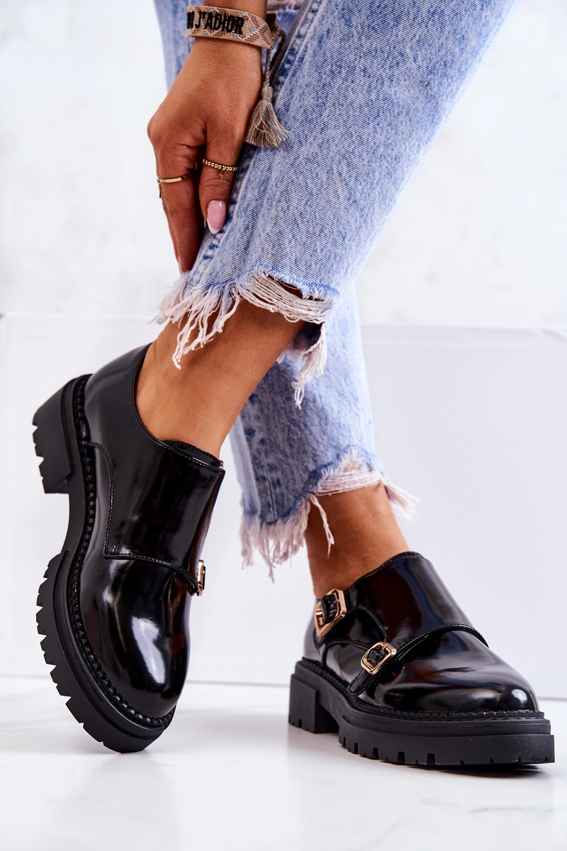Skórzane Półbuty Ze Sprzączką La.Fi Czarne Leonie