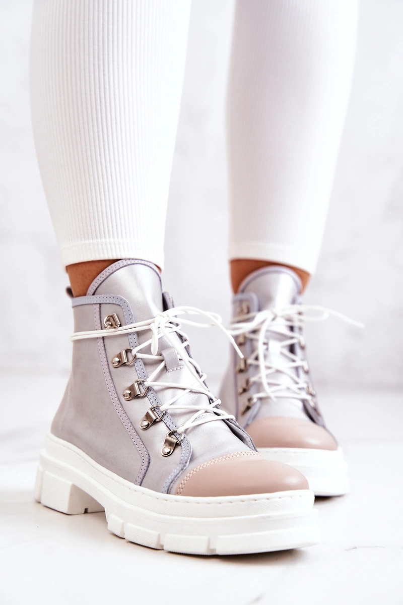 Botki zostały wykonane z naturalnej skóry. Posiadają klasyczne wiązanie umożliwiające dopasowanie buta do tęgości nogi. Grubsza podeszwa świetnie odizoluje od zimnego podłoża. Wkładka wykonana z naturalnej skóry. Pięknie prezentują się na nodze! Koniecznie musisz je mieć! Przy wyborze rozmiaru prosimy sugerować się tabelą rozmiarów.
