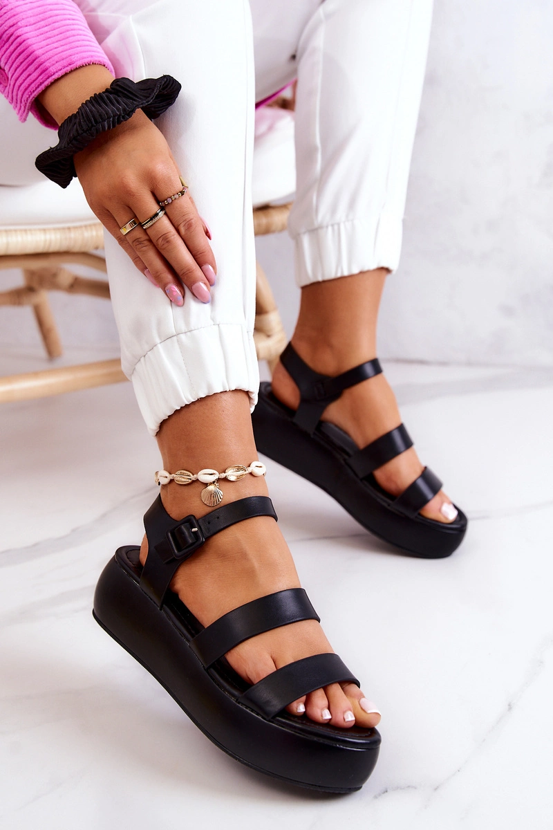 Skórzane Sandały Na Sprzączkę Czarne Graceful