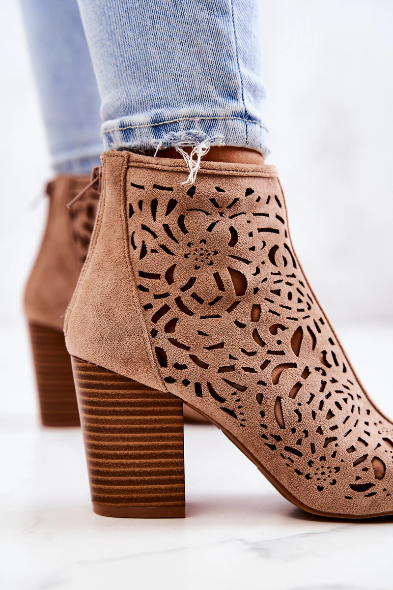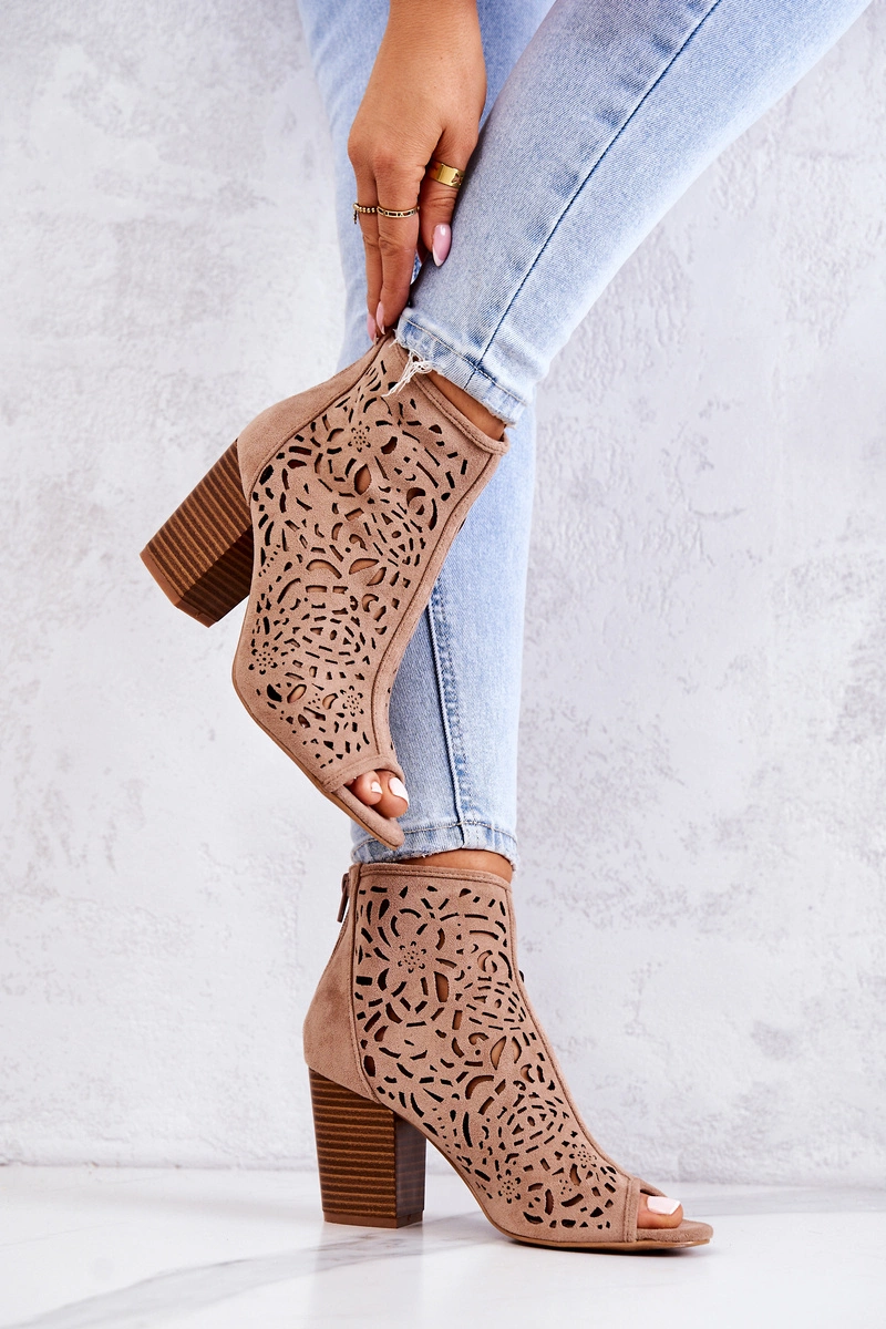 Botki Na Słupku Ażurowe Beżowe Brittany