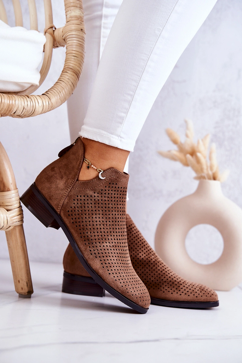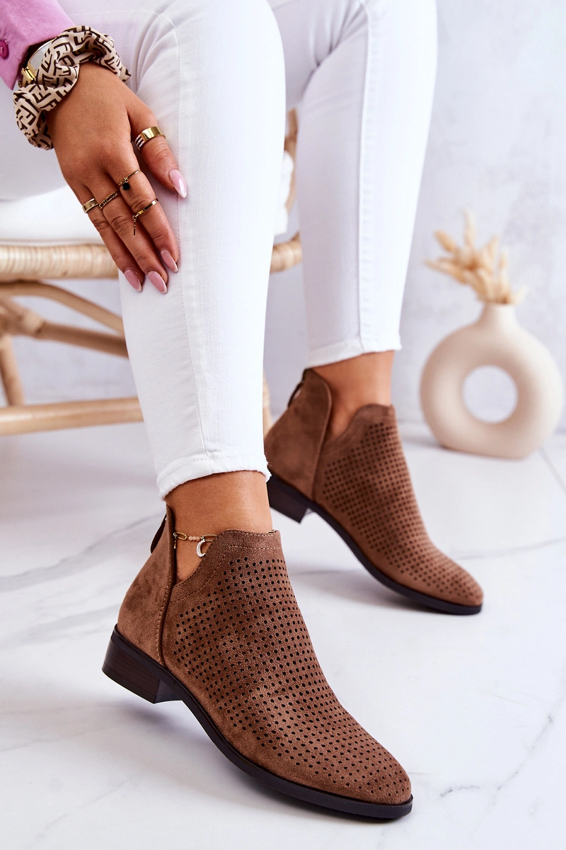 Zamszowe Botki Ażurowe Brązowe Shirley