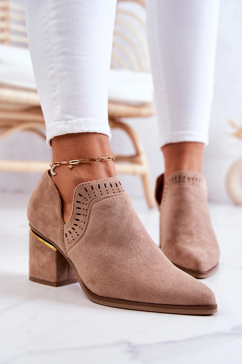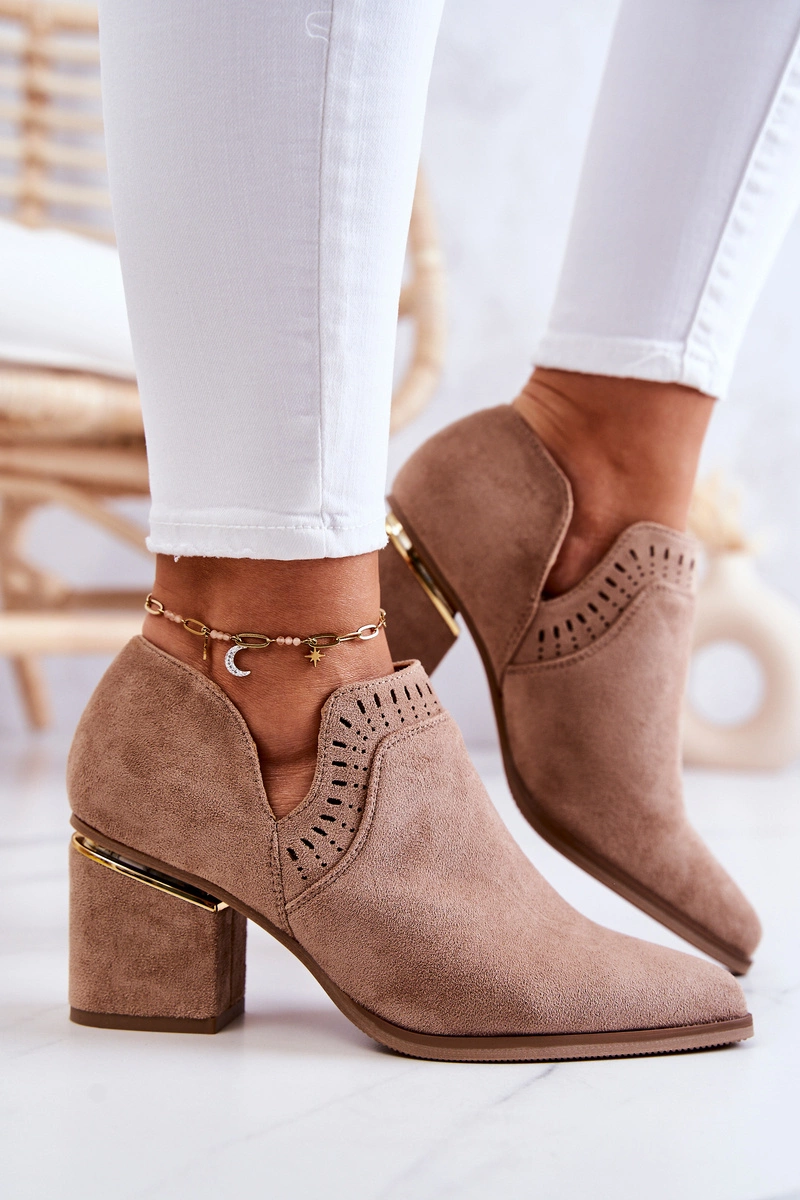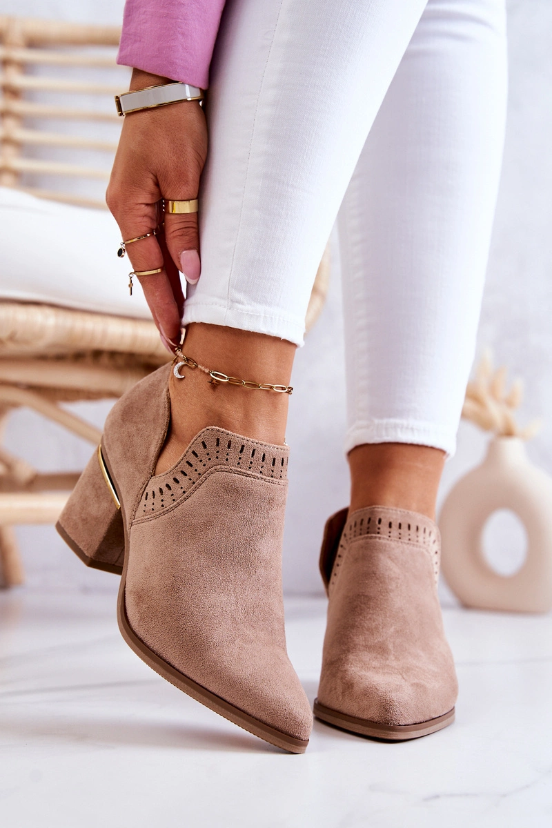 Zamszowe Botki Kowbojki Ażurowe Ciemnobeżowe Valerie