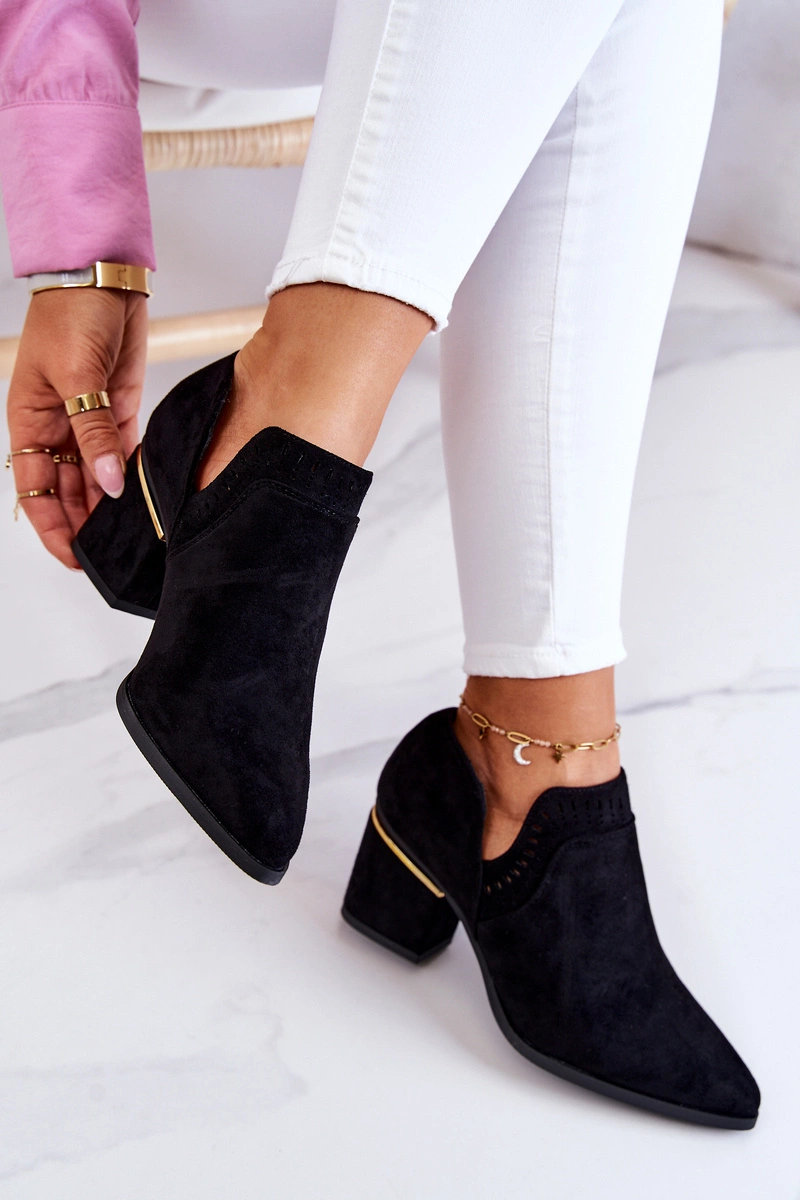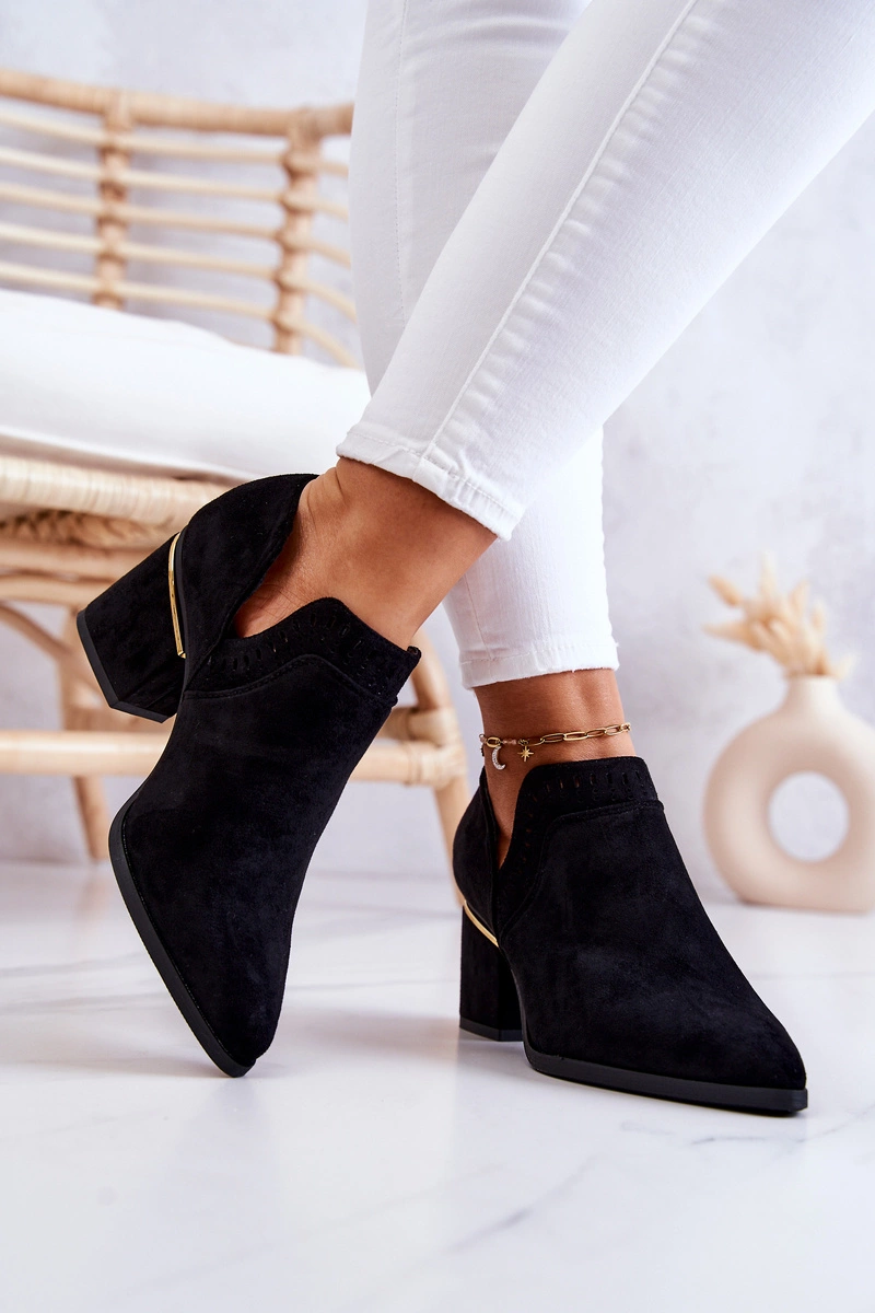 Zamszowe Botki Kowbojki Ażurowe Czarne Valerie