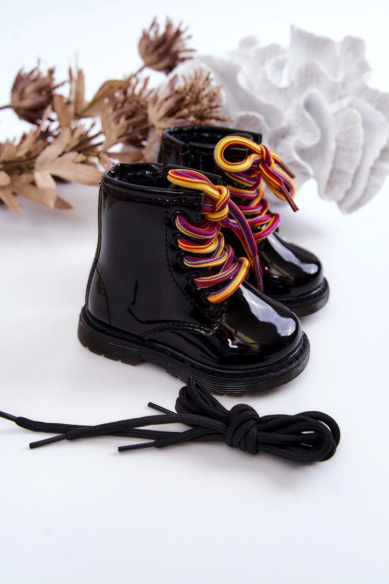 Dziecięce Botki Lakierowane Z Suwakiem Czarne Tibbie - Kolorowe Sznurówki