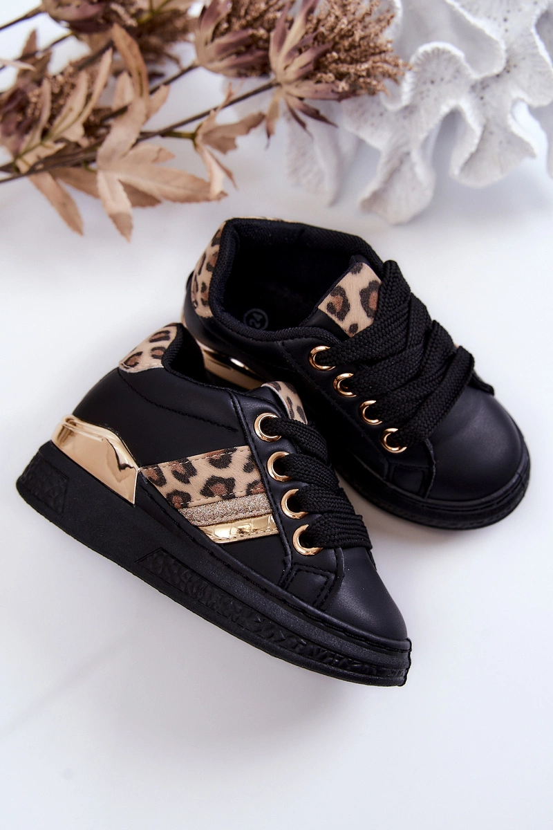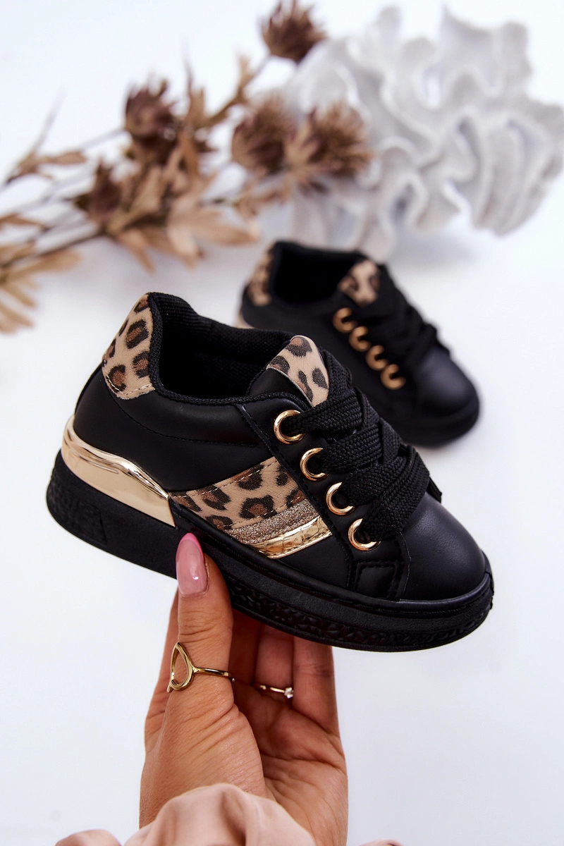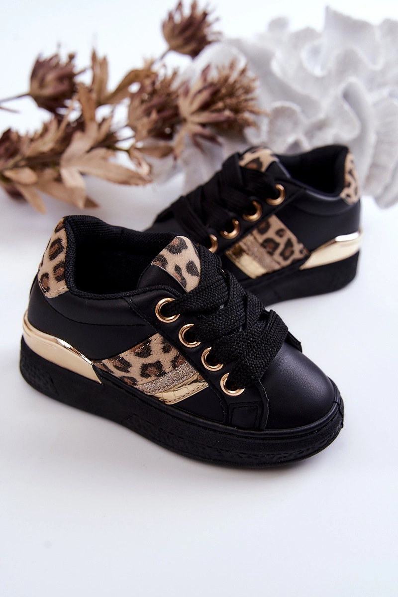 Skórzane Buty Sportowe Panterka Czarne Trixie