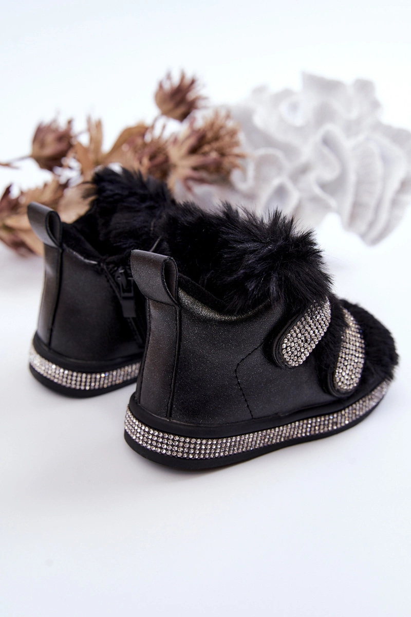 Skórzane Dziecięce Śniegowce Ocieplane Czarne Leela