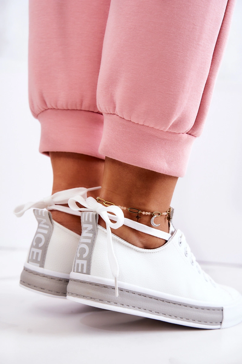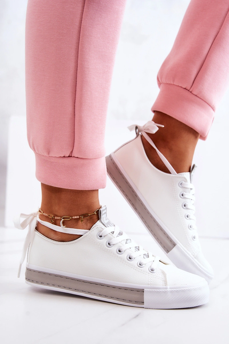 Damskie Skórzane Tenisówki Biało-Szare Mikayla