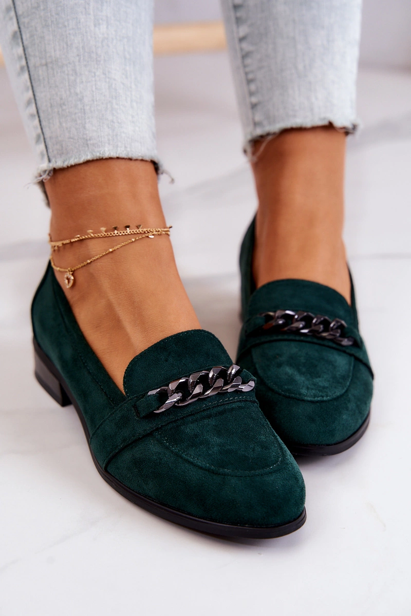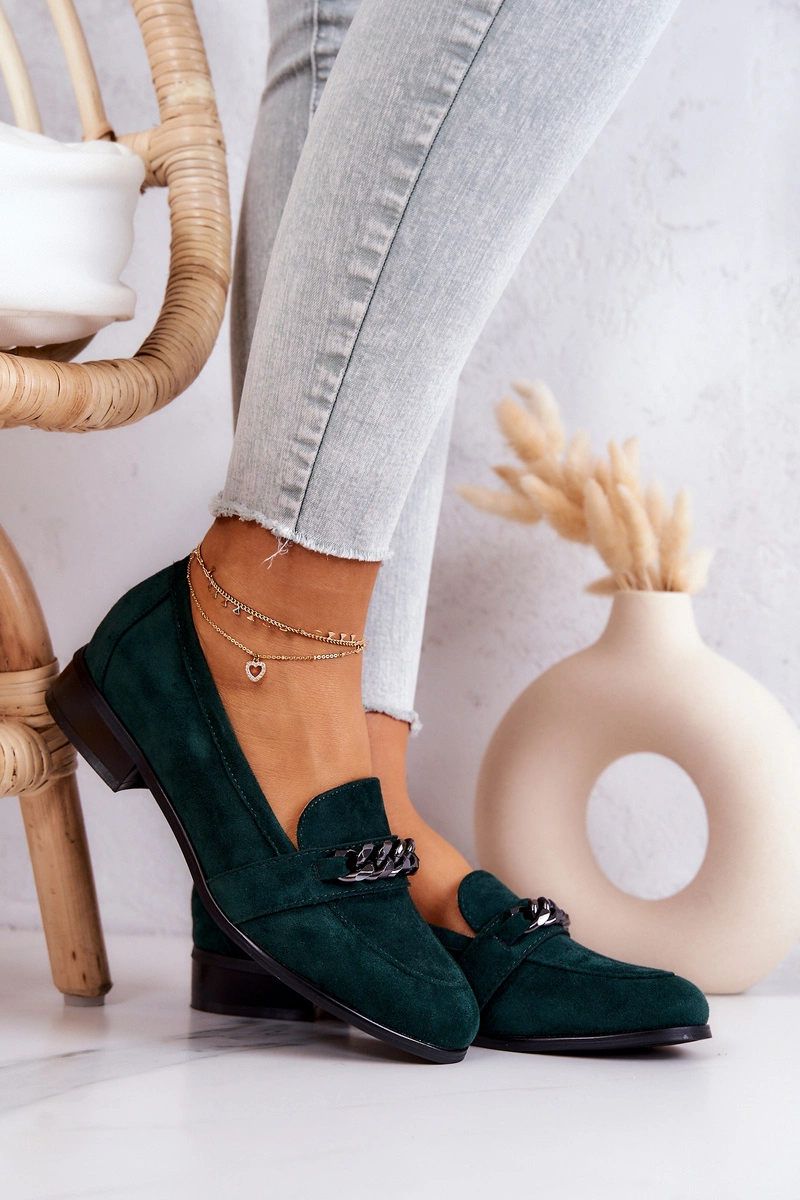 Zamszowe Półbuty Mokasyny Zielone Yasmin