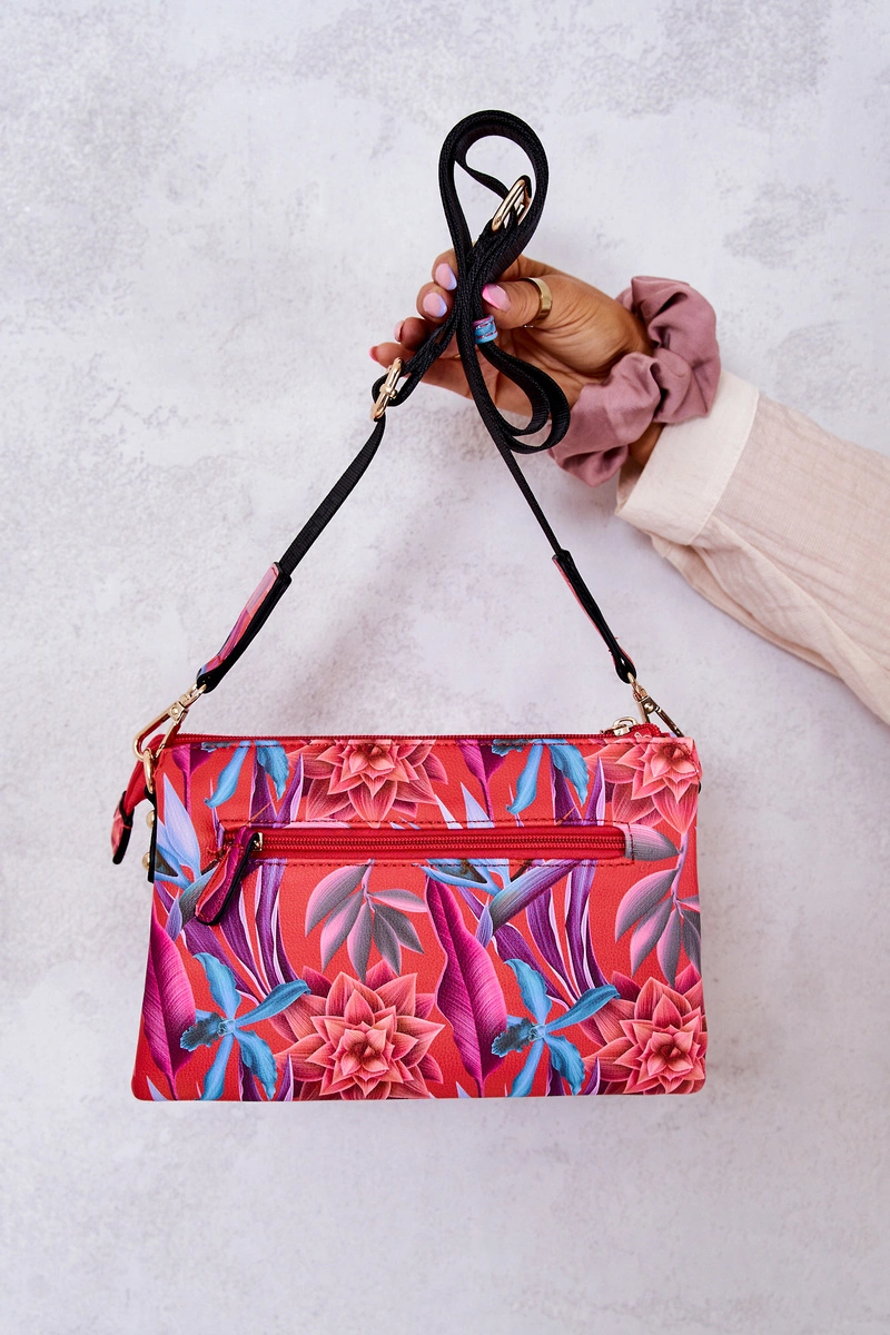 Fenomenalna listonoszka Nobo z kwiatowym motywem. Torebka idealnie uzupełni wiosenno-letnie stylizacje. Wykonana z wysokojakościowej eko skóry z logo marki NOBO. Posiada wiele otwartych kieszonek większych i jedną mniejszą. Dodatkowo w środku oraz na zewnątrz znajdują się także kieszonki zamykane na suwak. Do torebki jest dołączony materiałowy, regulowany pasek, który można odpiąć.
