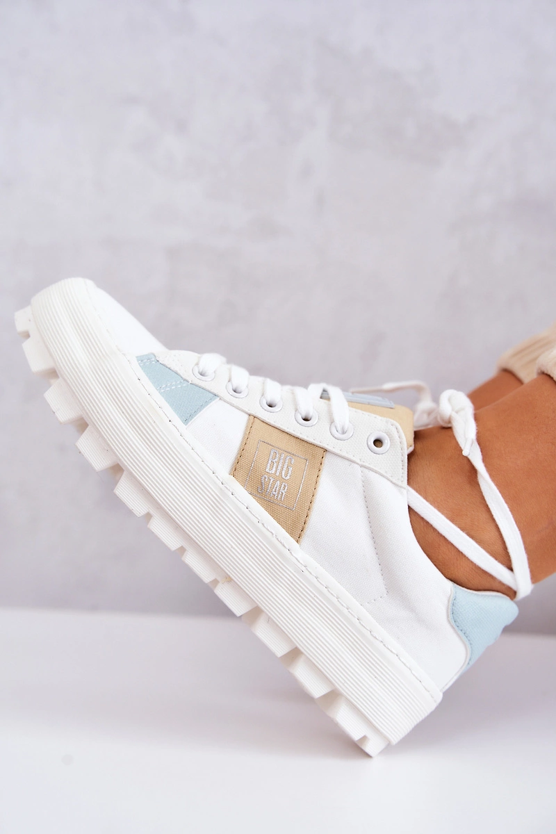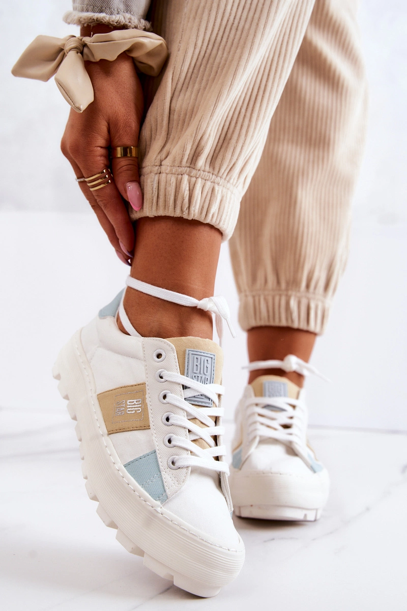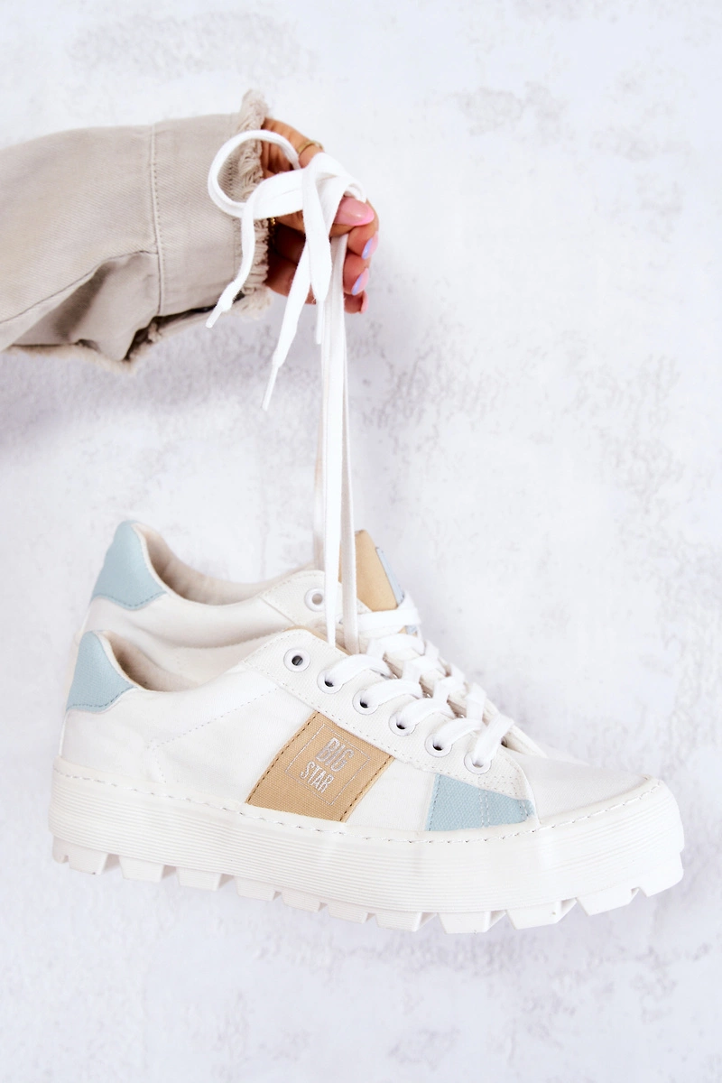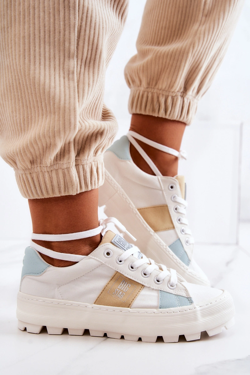 Piękny model tenisówek od marki Big Star! Wykonane z tkaniny, ozdobnie przyszyte kawałki materiałów w innym kolorze. Posiadają masywną, antypoślizgową platformę, która delikatnie uniesie Twoją sylwetkę, a jednocześnie zapewni stabilność na nierównym podłożu. Tenisówki klasycznie wiązane. Świetny model do wielu stylizacji! Przy wyborze rozmiaru prosimy sugerować się tabelą rozmiarów.