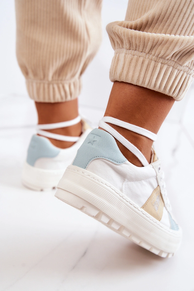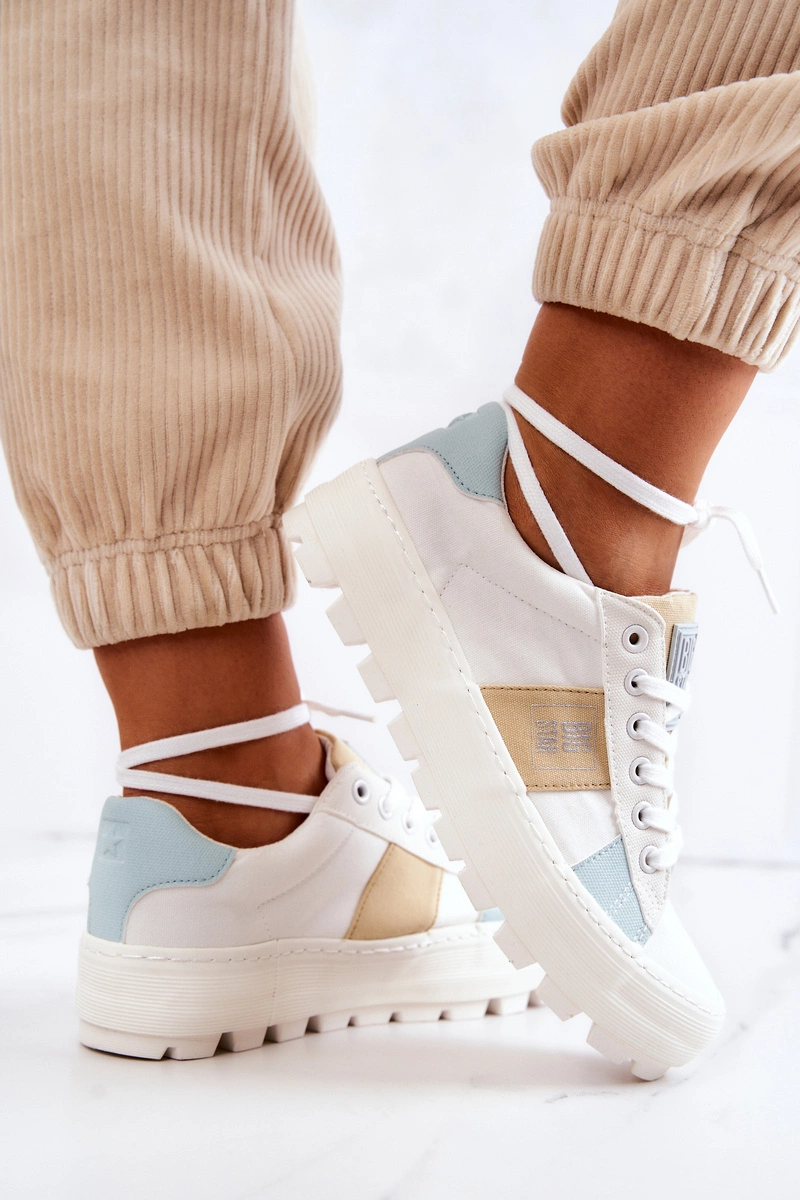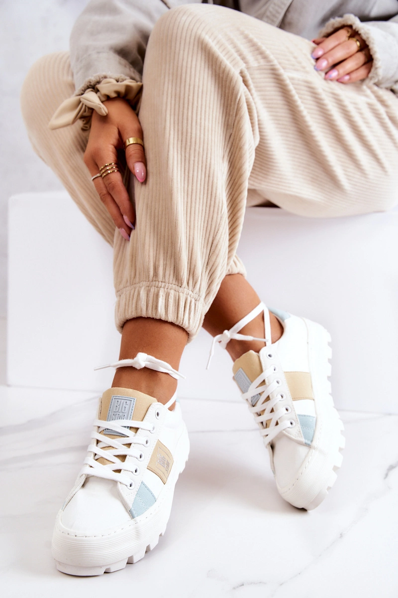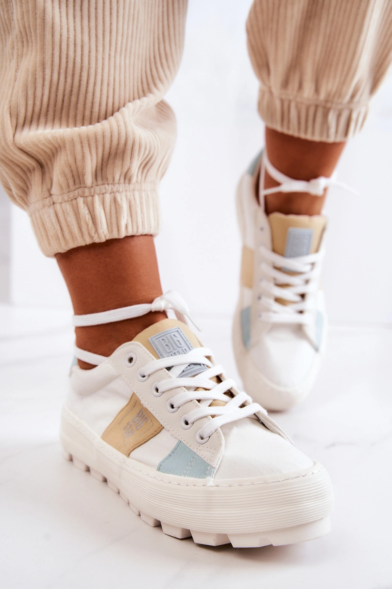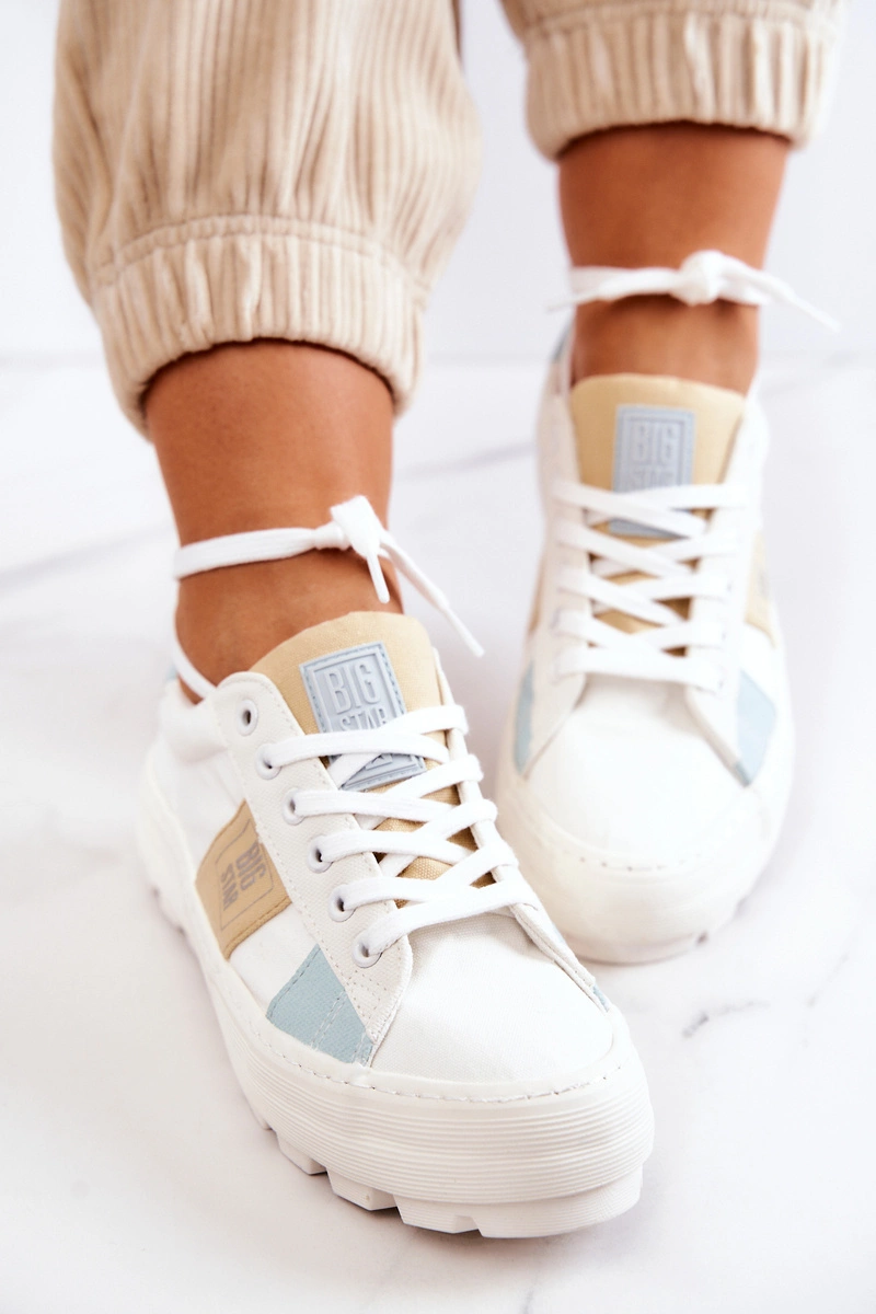 Piękny model tenisówek od marki Big Star! Wykonane z tkaniny, ozdobnie przyszyte kawałki materiałów w innym kolorze. Posiadają masywną, antypoślizgową platformę, która delikatnie uniesie Twoją sylwetkę, a jednocześnie zapewni stabilność na nierównym podłożu. Tenisówki klasycznie wiązane. Świetny model do wielu stylizacji! Przy wyborze rozmiaru prosimy sugerować się tabelą rozmiarów.