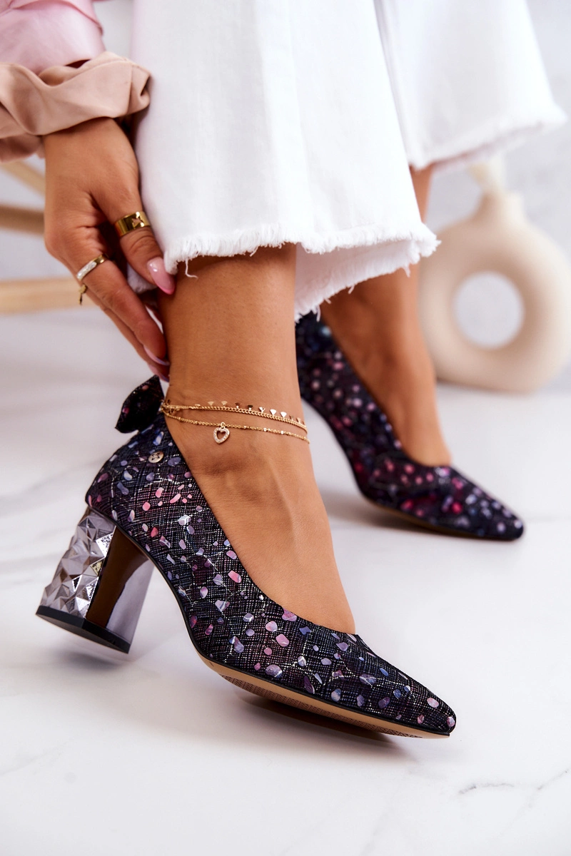 Skórzane Czółenka Na Słupku Maciejka 05334-15 Granatowe
