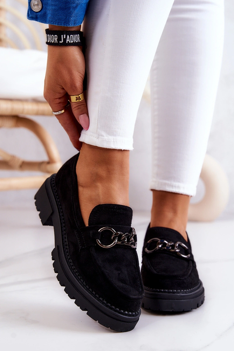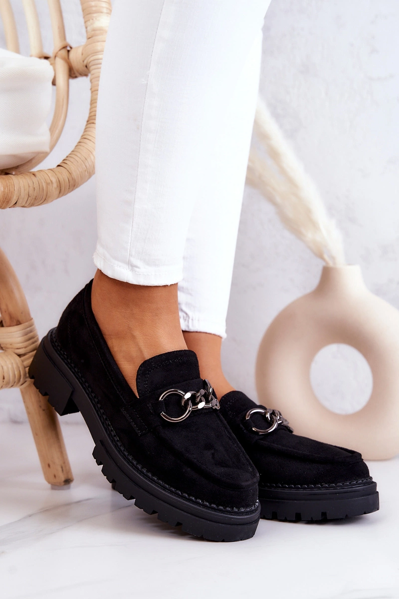 Damskie Zamszowe Półbuty Loafery La.Fi Czarne Willows