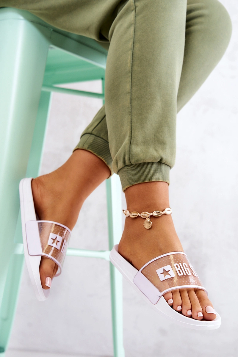 Wyjątkowa jakość wykonania - właśnie to wyróżnia obuwie marki Big Star! Wykonane z lekkiego, wysokogatunkowego tworzywa oraz gumy. Modne, wygodne, a zarazem kobiece. Przezroczyste elementy w cholewce nadają im charakterystycznego wyglądu. Te klapki zostały wyposażone w wyściółkę, która zapewni wysoki komfort dla Twoich stóp w ciągu całego dnia. Ciesz się wygodą na co dzień! Przy wyborze rozmiaru prosimy sugerować się tabelą rozmiarów.