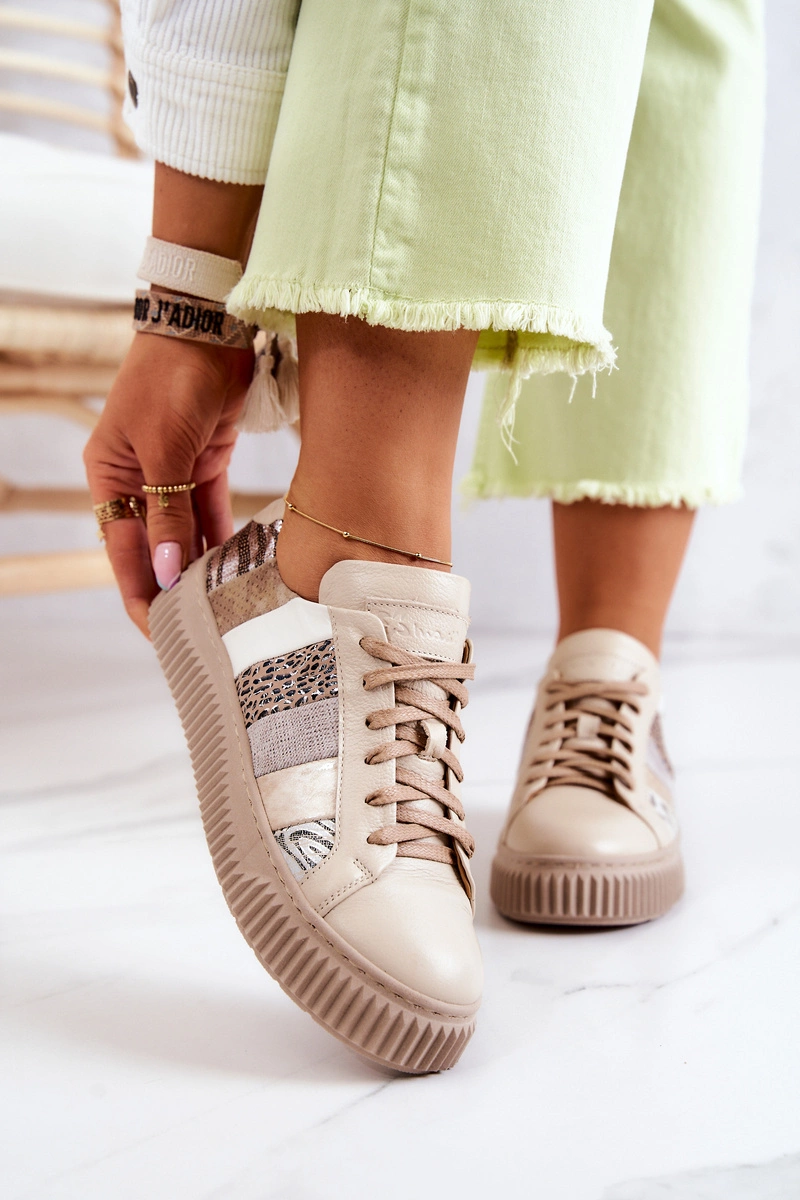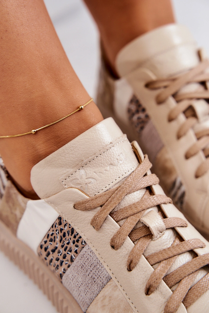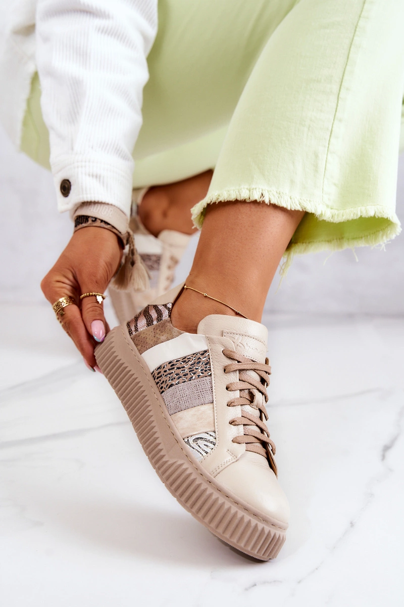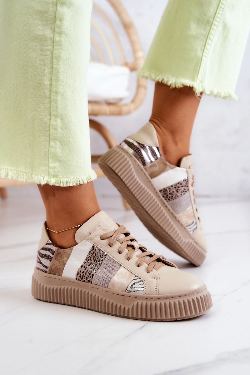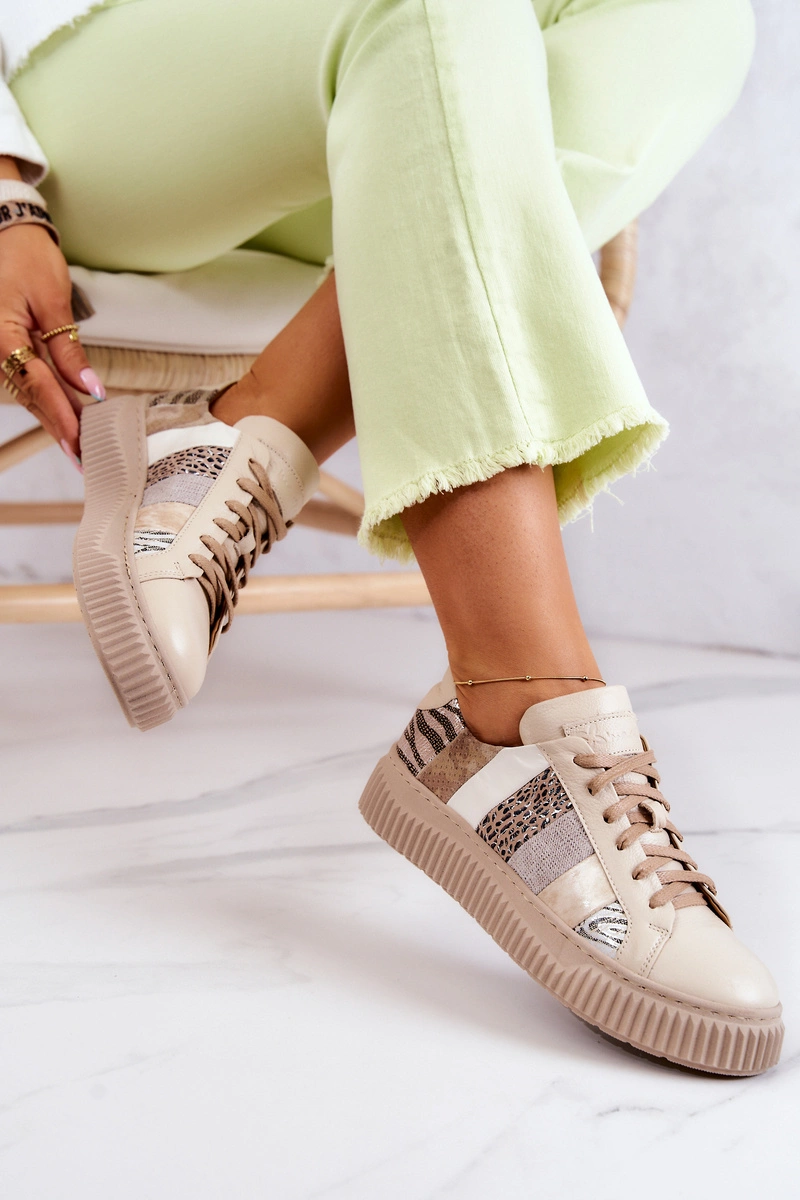 Skórzane Buty Sportowe Na Platformie Maciejka 05482-04 Beżowe