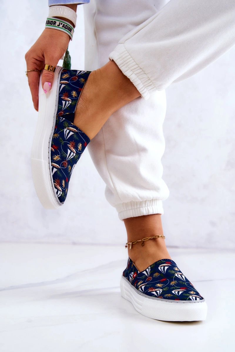 Damskie Tenisówki Slip On Memory Foam Big Star JJ276016 Granatowe