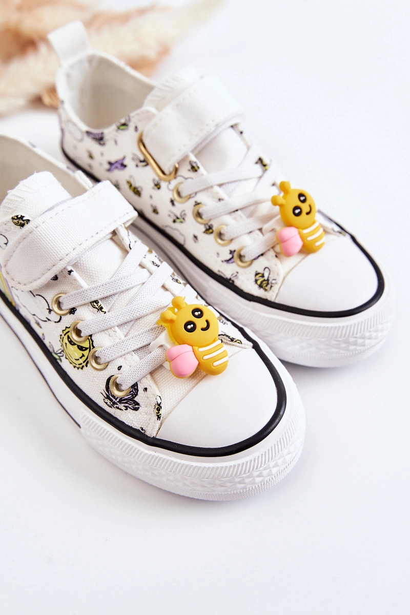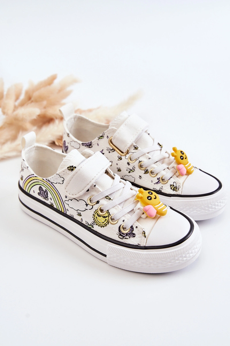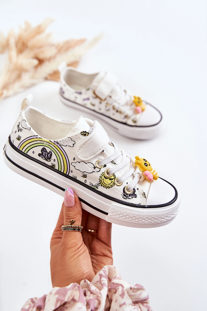 Dziecięce Trampki Na Rzep Z Printem Białe Lace