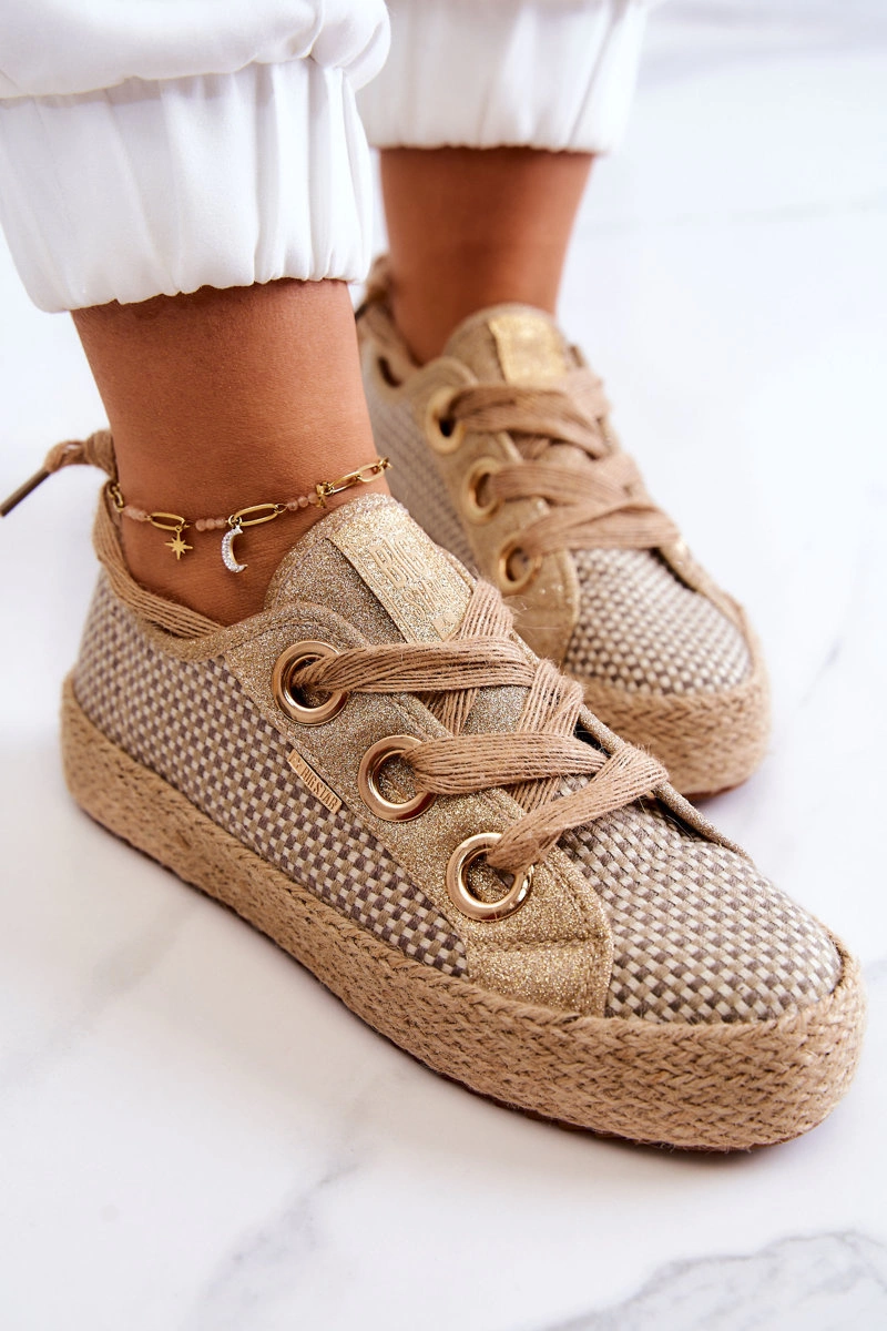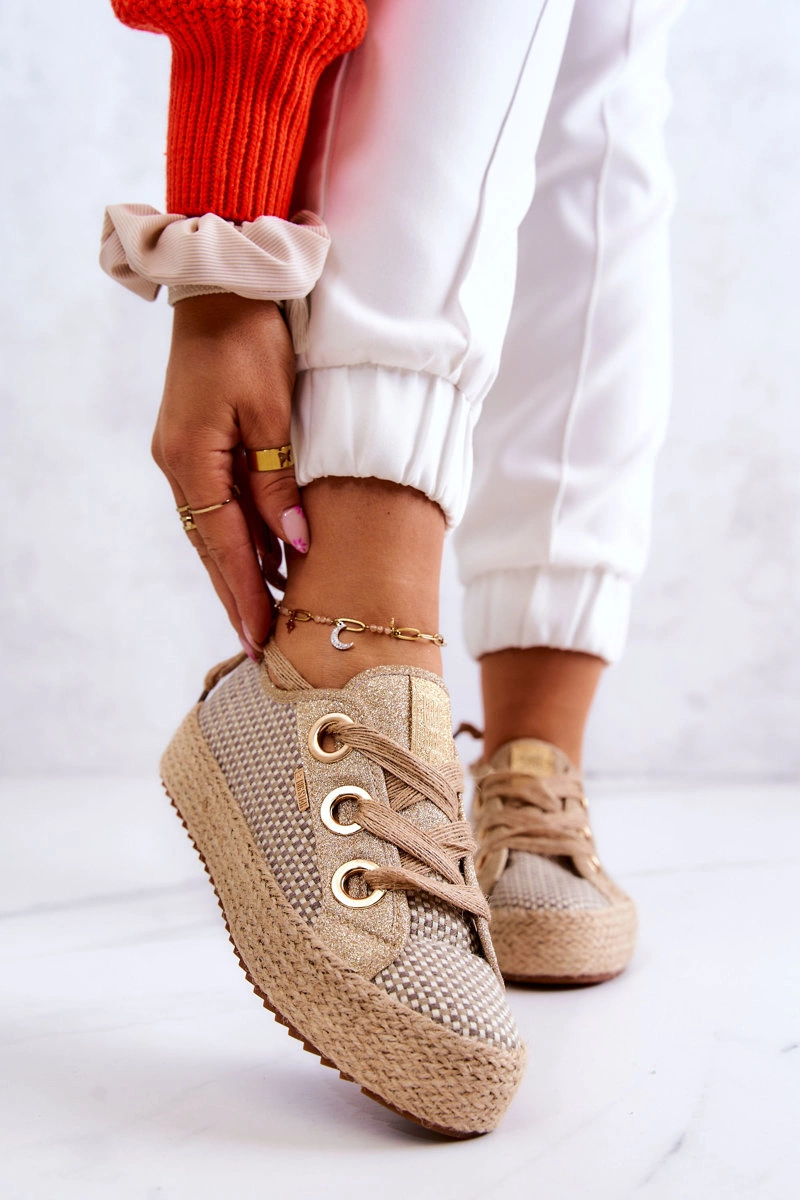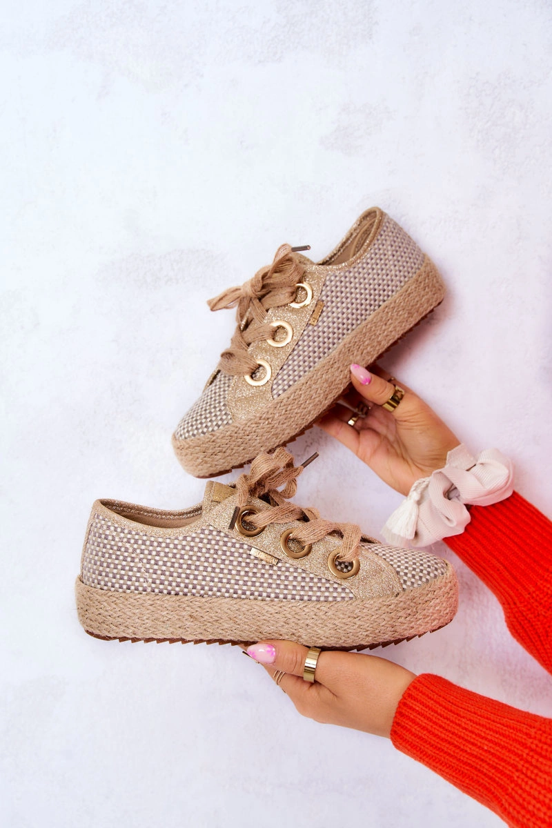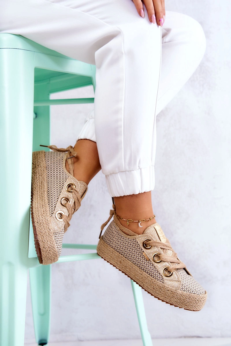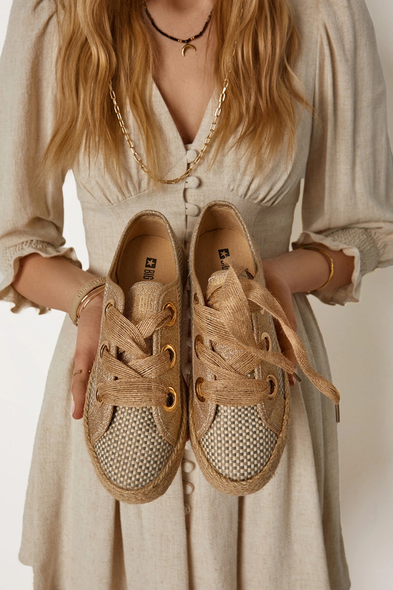 Tenisówki są wykonane z materiału tekstylnego i elementów z tworzywa sztucznego. Na nodze prezentują się niesamowicie! Cholewka wykonana z przeplatanej tkaniny. Nosek lekko zaokrąglony. Miękka wkładka została wykonana z wysokiej jakości tkaniny. Ozdobne sznurowadła oraz błyszczące wstawki z materiału sprawiają, że te buty wyglądają naprawdę wyjątkowo. Gumowa podeszwa z plecionką jest antypoślizgowa. Koniecznie powinnaś je mieć! Przy wyborze rozmiaru prosimy sugerować się tabelą rozmiarów.