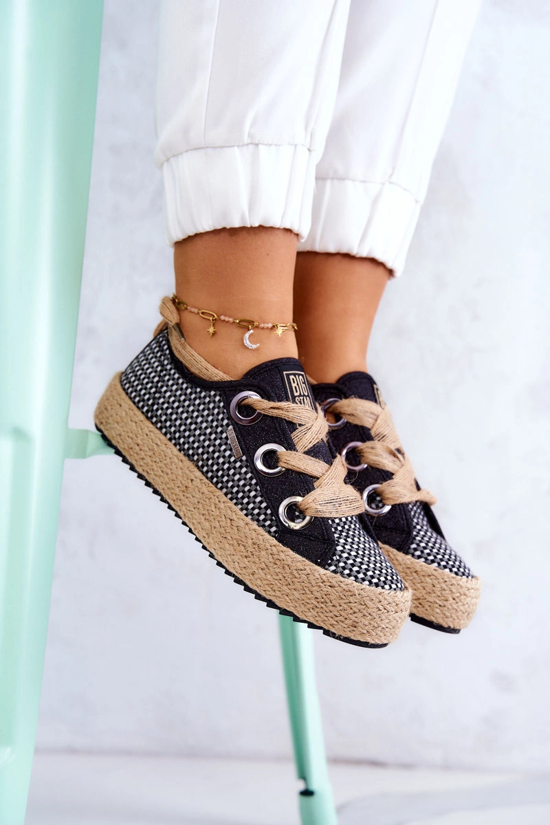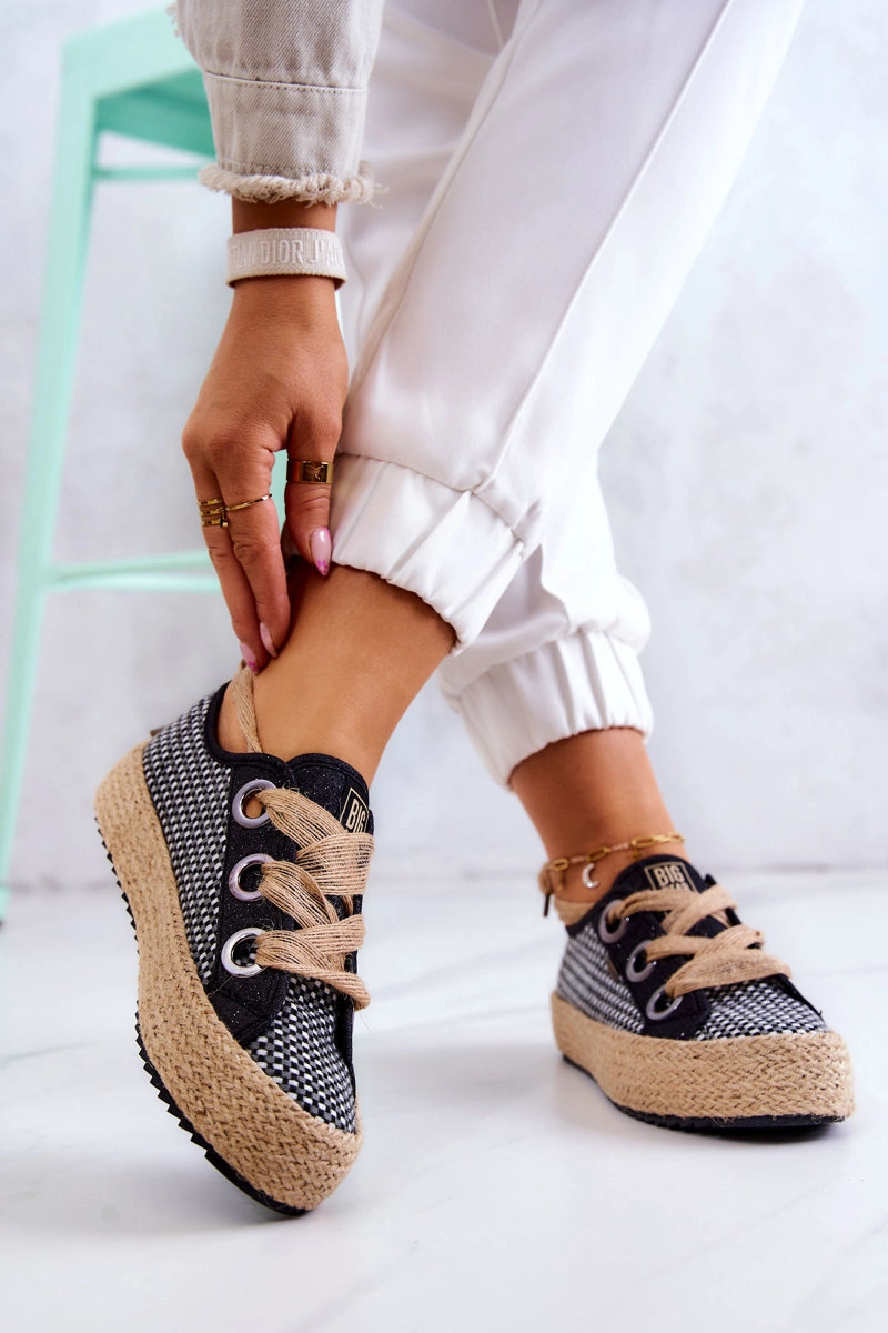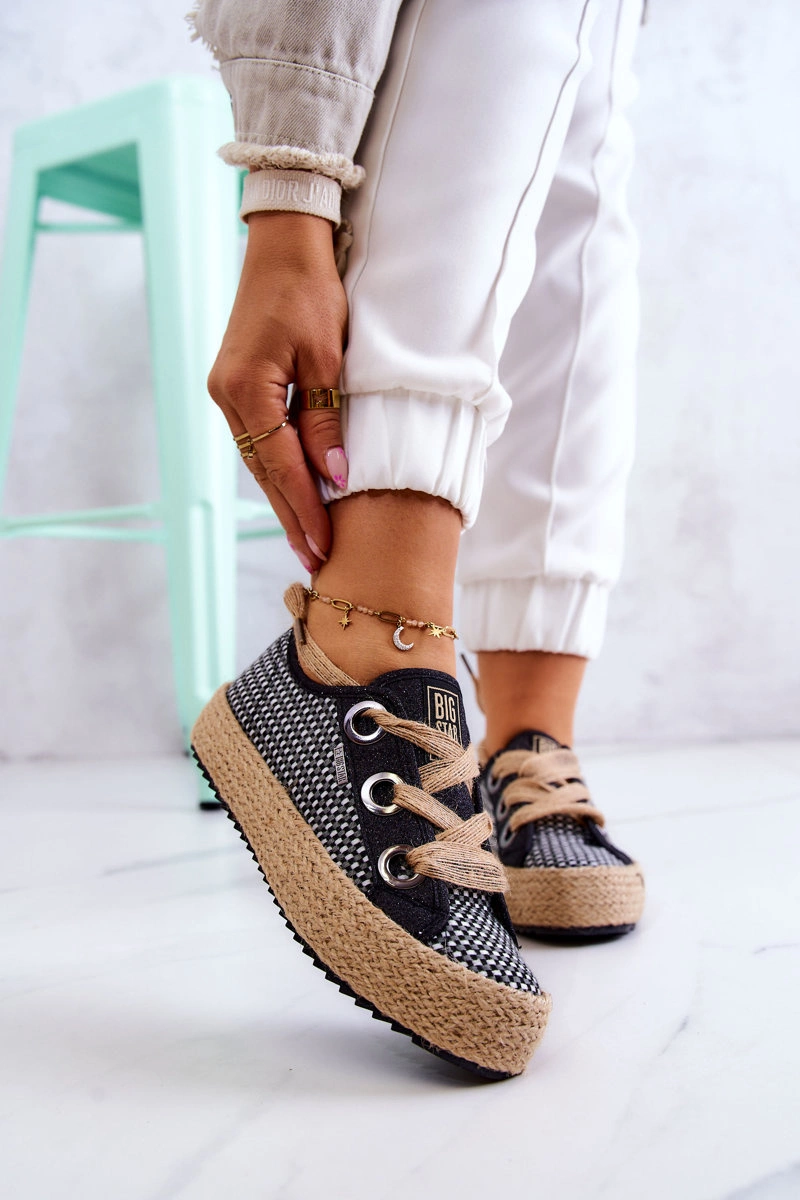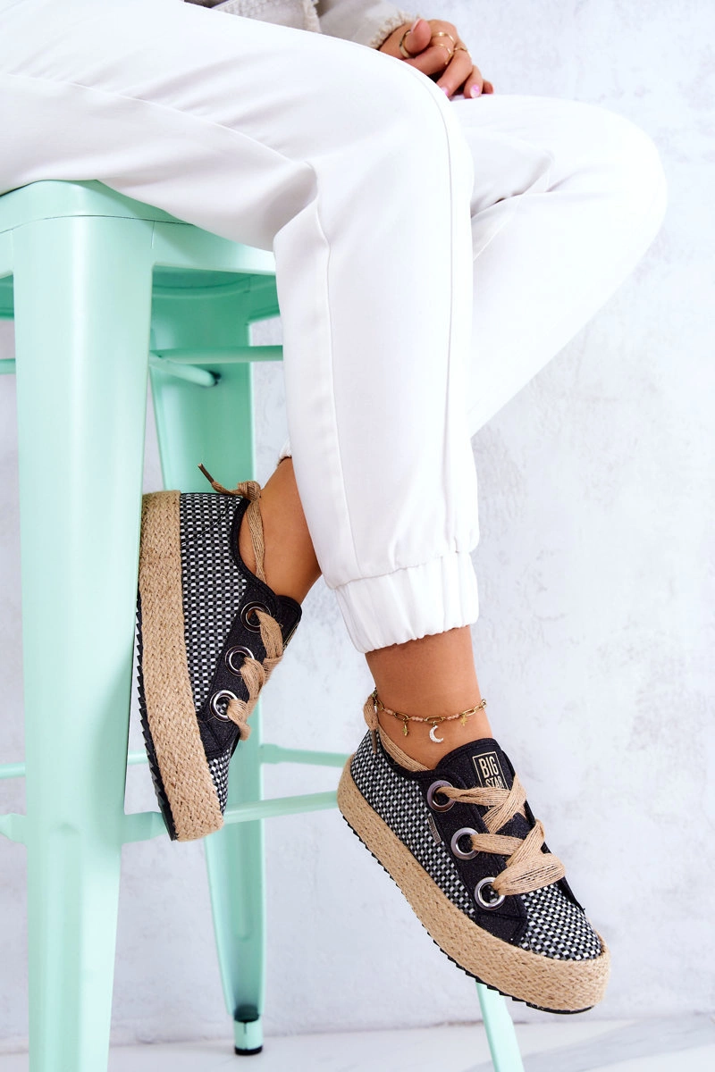 Tenisówki są wykonane z materiału tekstylnego i elementów z tworzywa sztucznego. Na nodze prezentują się niesamowicie! Cholewka wykonana z przeplatanej tkaniny. Nosek lekko zaokrąglony. Miękka wkładka została wykonana z wysokiej jakości tkaniny. Ozdobne sznurowadła oraz błyszczące wstawki z materiału sprawiają, że te buty wyglądają naprawdę wyjątkowo. Gumowa podeszwa z plecionką jest antypoślizgowa. Koniecznie powinnaś je mieć! Przy wyborze rozmiaru prosimy sugerować się tabelą rozmiarów.
