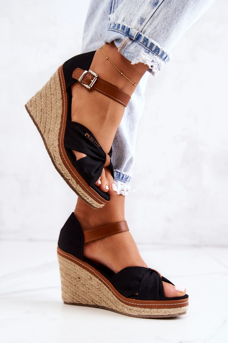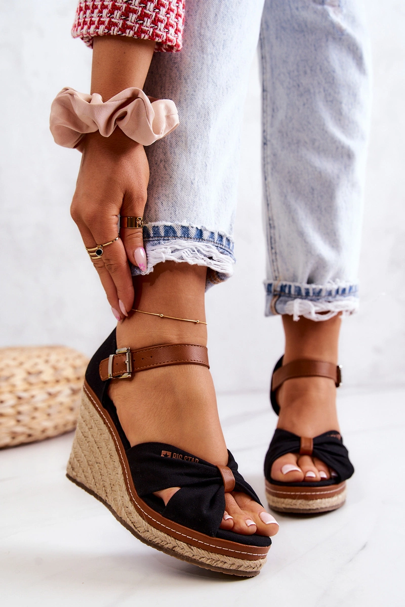 Sandały Damskie Na Koturnie Big Star JJ274937 Czarne