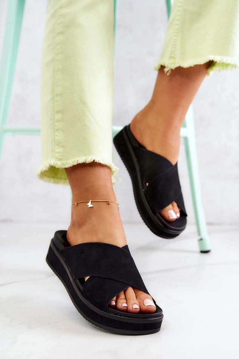 Skórzane Damskie Klapki Big Star JJ274721 Czarne