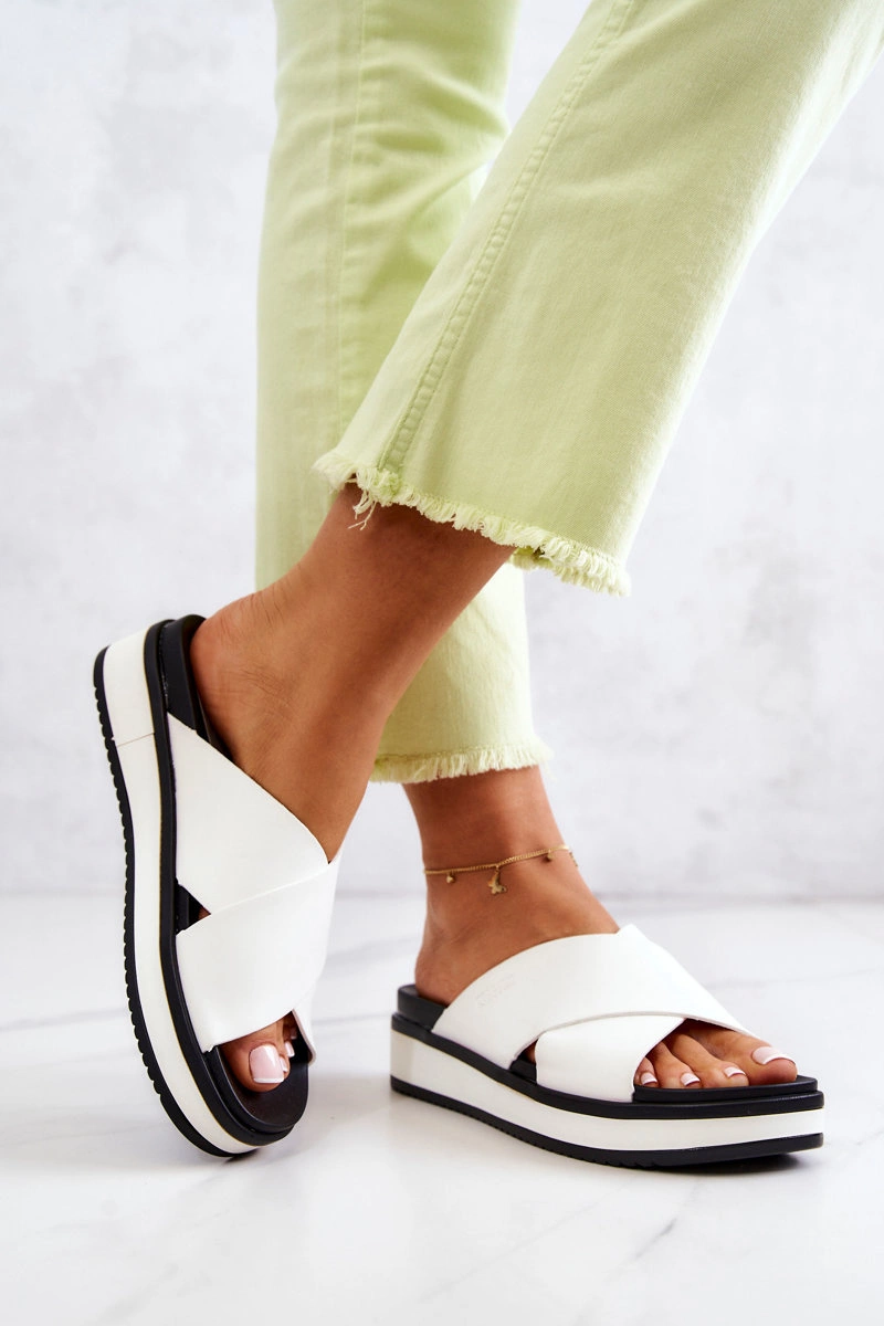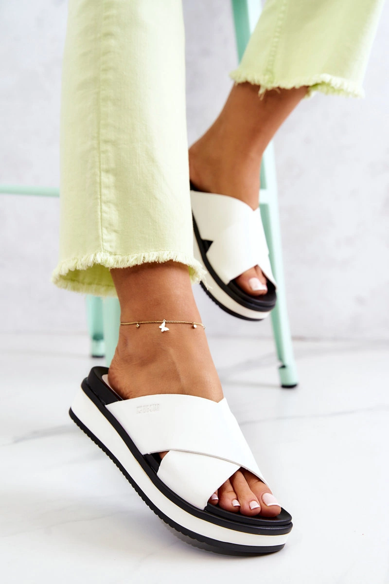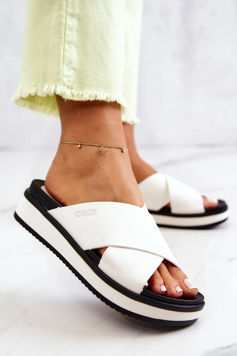 Skórzane Damskie Klapki Big Star JJ274723 Białe