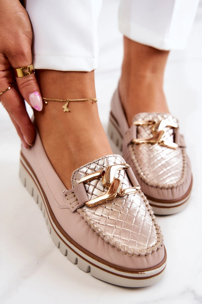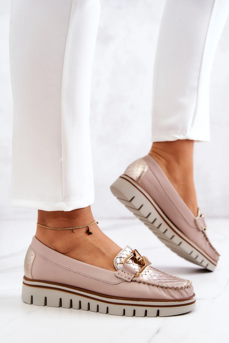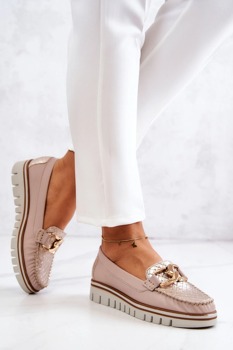 Damskie Skórzane Mokasyny Na Platformie Beżowe Venesia