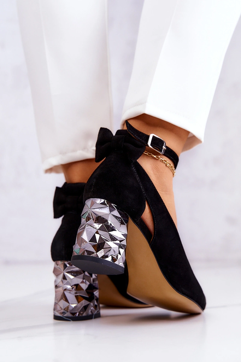 Zamszowe Czółenka Z Kokardką Maciejka 05059-01 Czarne